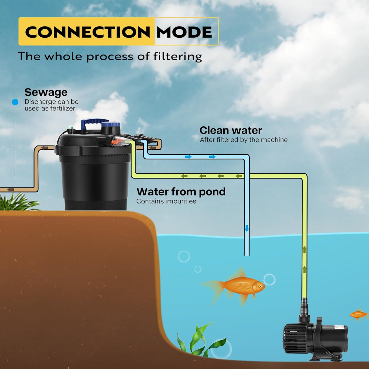 • EASY TO OPERATE - This pond filter is more than simple to set up and put into use quickly; You can turn the switch to change the function from filtered water to sewage through the outlet; The convenient handle allows for easy relocation so you can put it anywhere you need