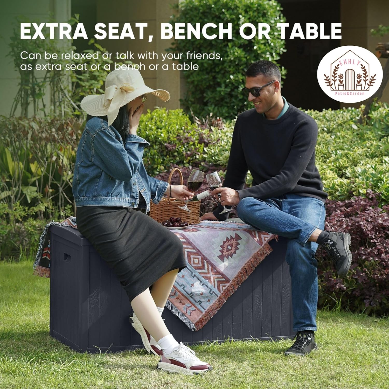 • Wood-Style Design: Our deck box combines the appeal of wood with the durability of resin, providing an elegant and long-lasting storage solution for your outdoor space.