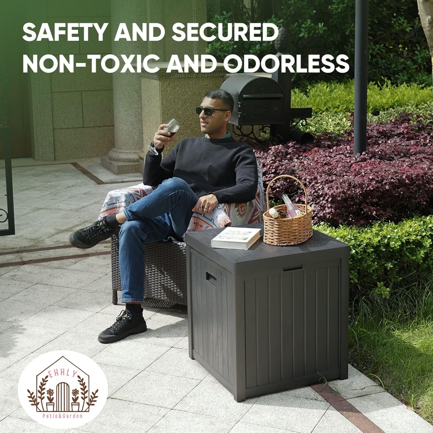 • Sturdy and multi-purpose: Crafted from high-quality resin, this outdoor deck storage box is not only robust but also versatile. It can function as an ideal storage solution, a small table, or a convenient seat for various occasions. With a weight capacity of 440 lbs, you can place books, coffee, or food on top of this waterproof deck box and even use it as a seat when you need a rest.