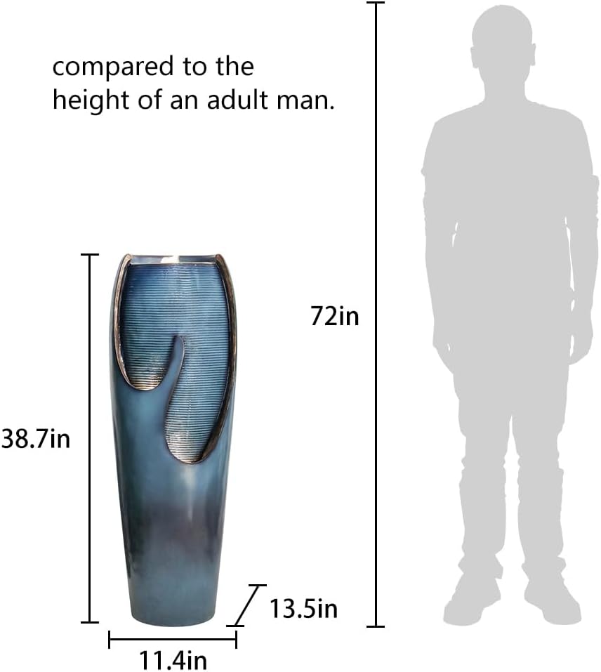 • 【Tall Outdoor Fountains Waterfalls with Modern Urn Design】Water fountain outdoor indoor with modern Jar design and contemporary curves texture is the perfect addition to your indoor outdoor house home office decor. Interior pump to keep water flowing circularly. The integrated LED lights illuminate the flowing water to add an element of visual charm and elegance. Create a visually appealing and calming ambiance, especially in the evening.