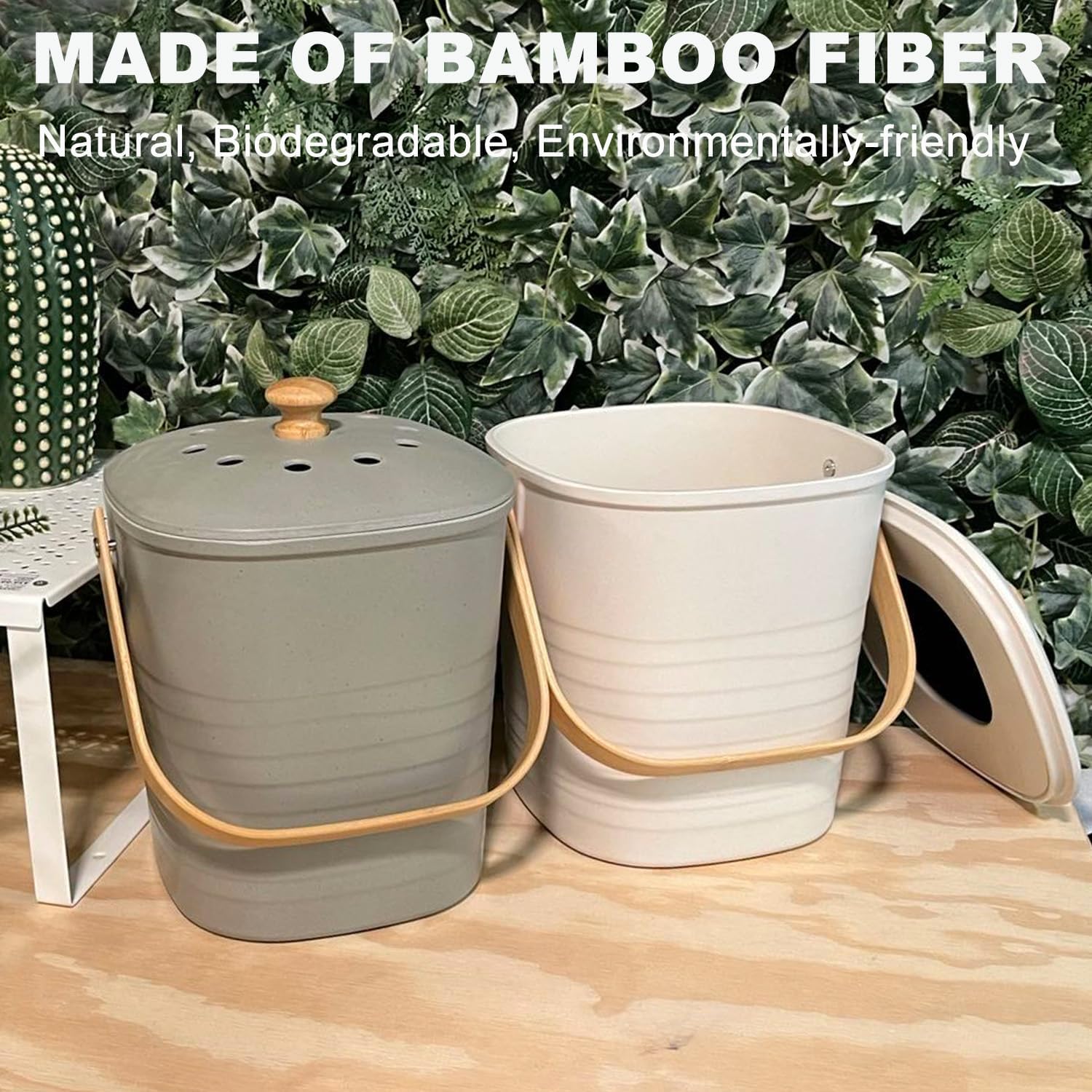 • All Natural: Made from earth-friendly recycled materials including Bamboo Fiber, Corn Starch, the kitchen compost bin countertop in itself is biodegradable.