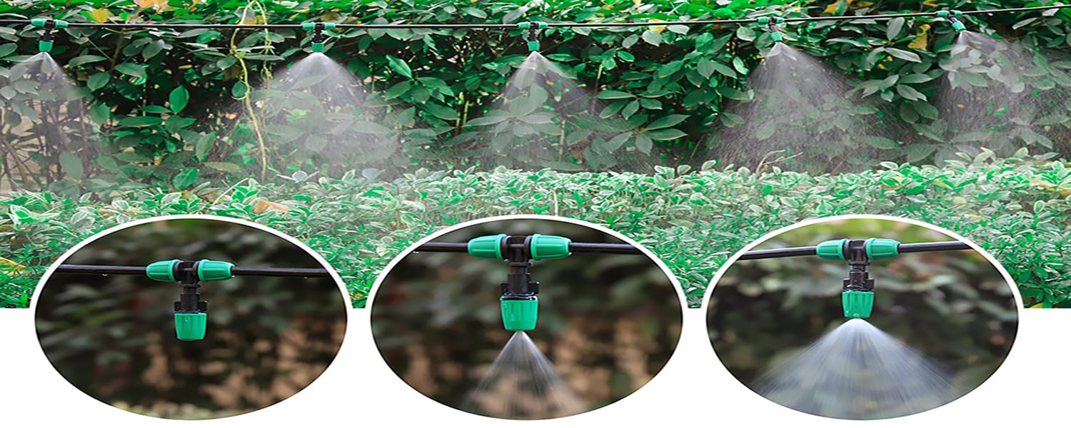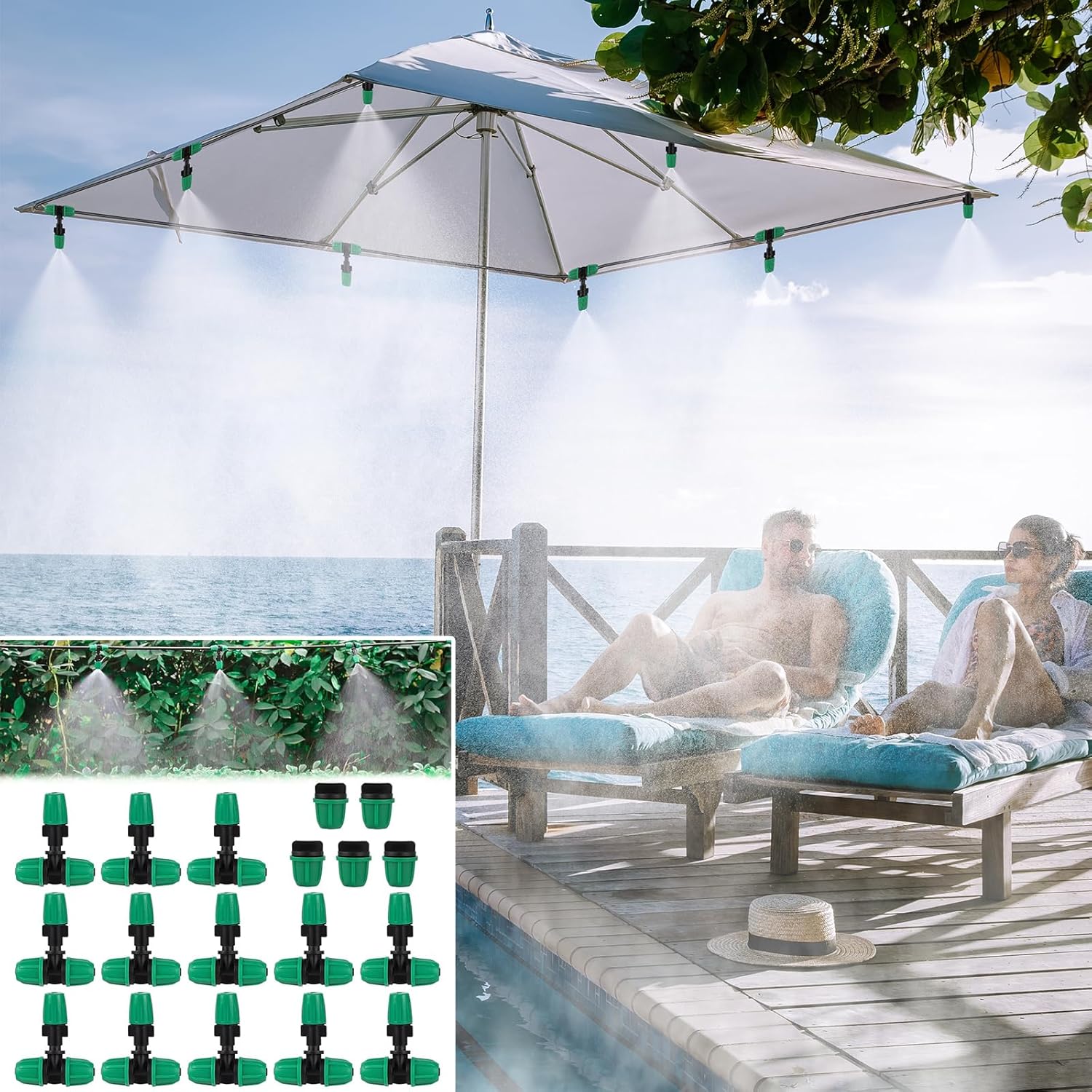 • Easy to install&Use: 20 Lock Barbed 6mm to 1/4 Inch Tee, 20 Adjustable Atomizing Nozzles 5 Lock Barbed 1/4 End Plugs.Great for Agriculture and Industry,greenhouse, lawn, garden, patio, balcony cooling,