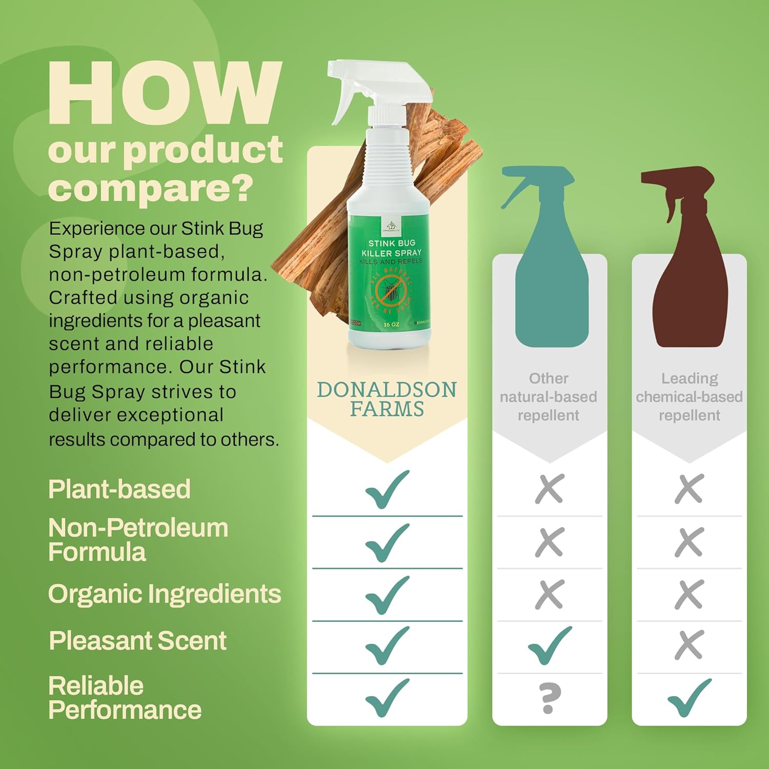 • Keeps At Bay: Donaldson Farms Stink Bug Spray eliminates stink bugs shortly after contact and can also be use as a repellent in areas where stink bugs may roam, keeping stink bugs away to your home.