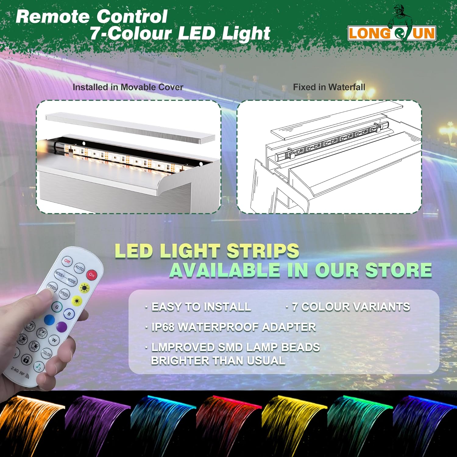 • 【DIY Decoration Pool & Pond fountain】LONGRUN waterfall spillway will make a decorative addition to your garden patio pond or swimming pool, it makes them more elegant, fashionable and beautiful. The color change of LED lights and the gentle sound of water running make your patio more special at night