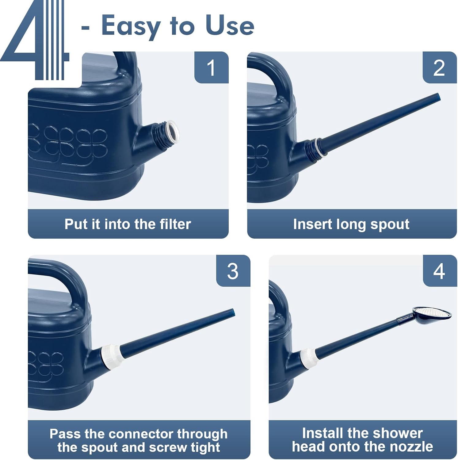 • [PRECISE WATERING, WATERING FLOWERS WITHOUT WORRY]-Plant watering can has a removable long spout, easy to carry and store, when installing, pass the connector through the spout and screw tight, seals well with no leak. Long spout watering can easy to reach distant plants, watering easily without bending over or tilting it too much, it easy to control the overall water flow, directing water exactly where it is needed, allowing every part of the plant to fully absorb the water.