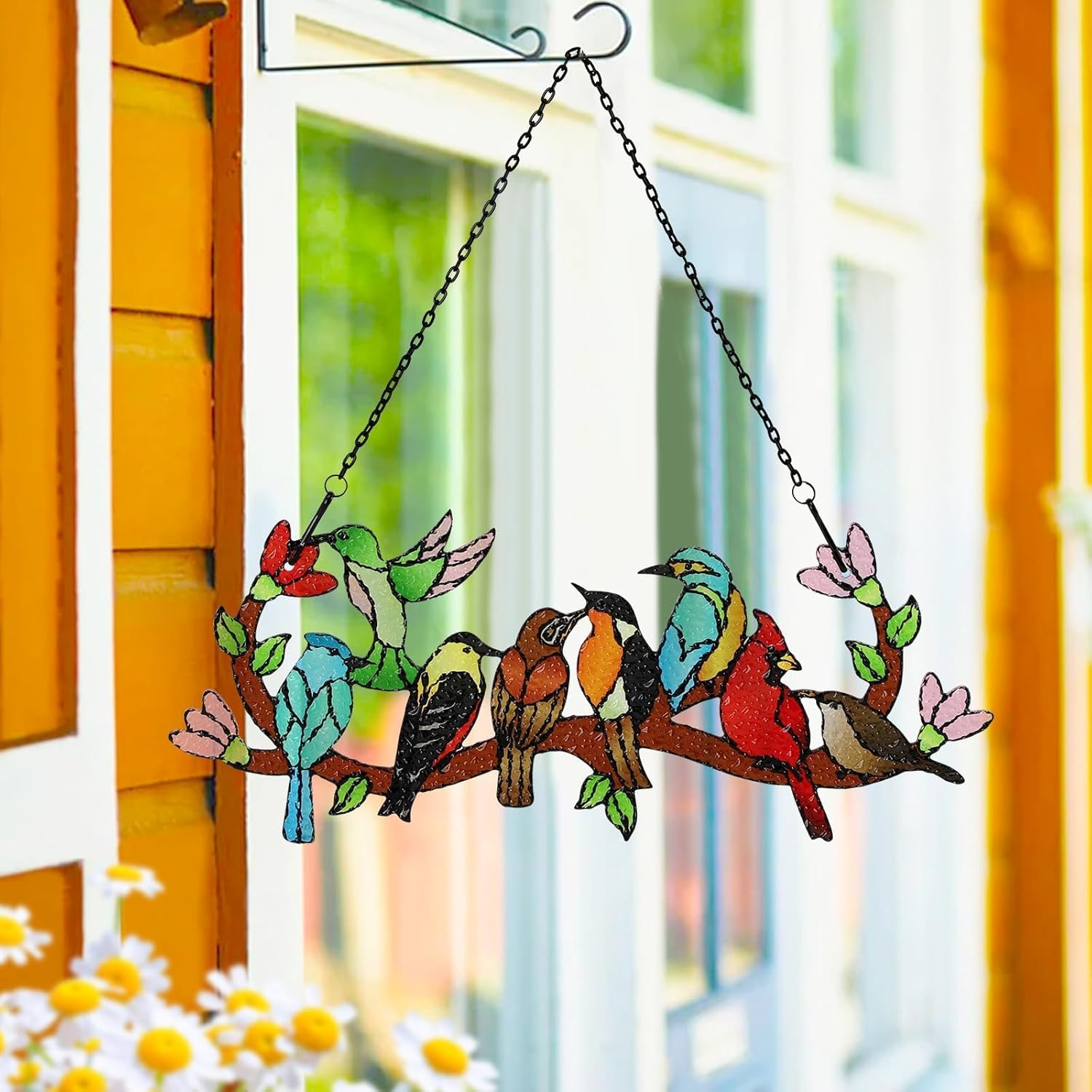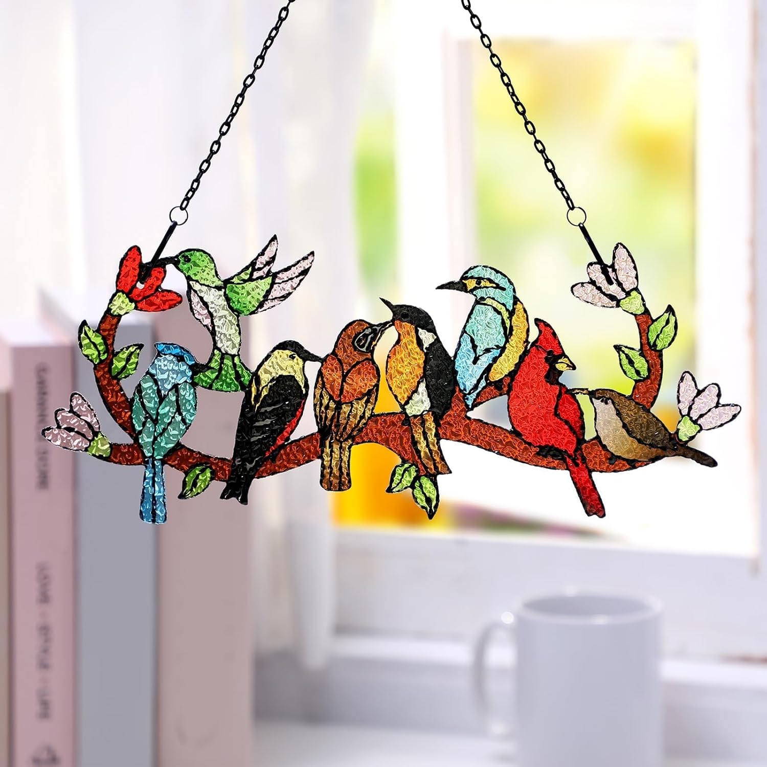 • Bird-Themed Design: Our birds-on-branch stained glass suncatcher vividly showcases 8 colorful birds perching on a sturdy budding branch, including cardinals, hummingbirds and kingfishers. Great addition to your home decoration, adding natural beauty and serenity to your house.