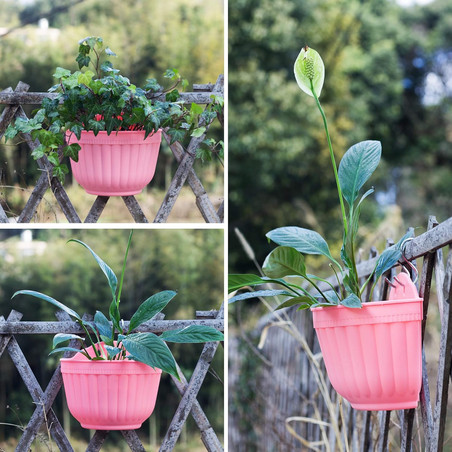 • Wicking System & Drainage System: Hanging planter pots with drainage mesh to allow excess water to store in the bottom of this lazy flower pot and provide to your plants as needed to ensure plants take enough water they need for days, and you don't have to water them frequently. This clever hanging flower pots may help you care your plants when you go outside a couple days or on business. Its small drainage hole drains off excess rainwater when installed outdoors.