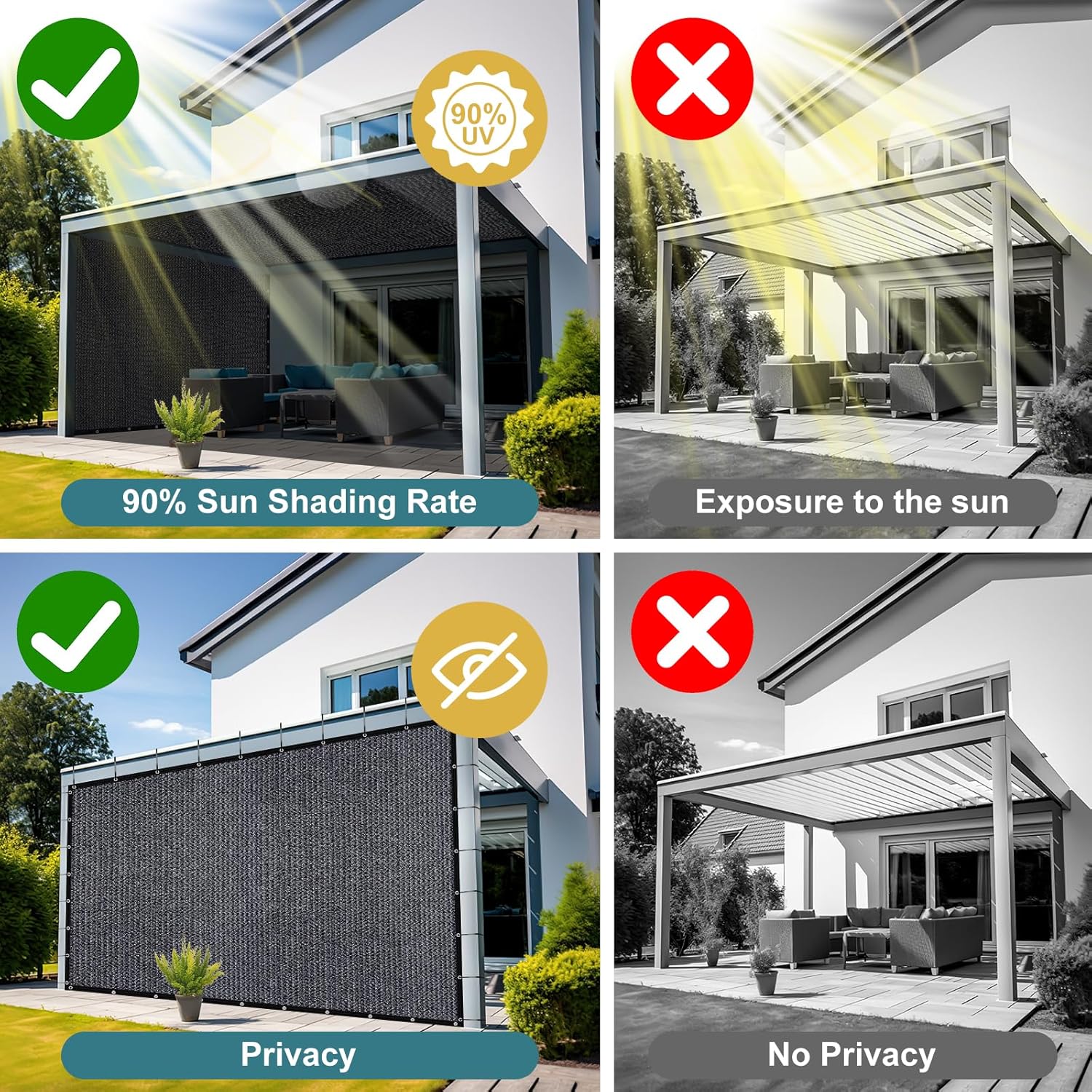 • Multiple Applications: This shade trap screen creates a comfortable outdoor seating area for you, offers a level of privacy from the outside without completely blocking your view of it. You can also use it to shield your greenhouse and plants from excessive sun exposure, or cover your pet house. Don't let the sun dictate your outdoor activities; take control with Shade&Beyond premium shade solution