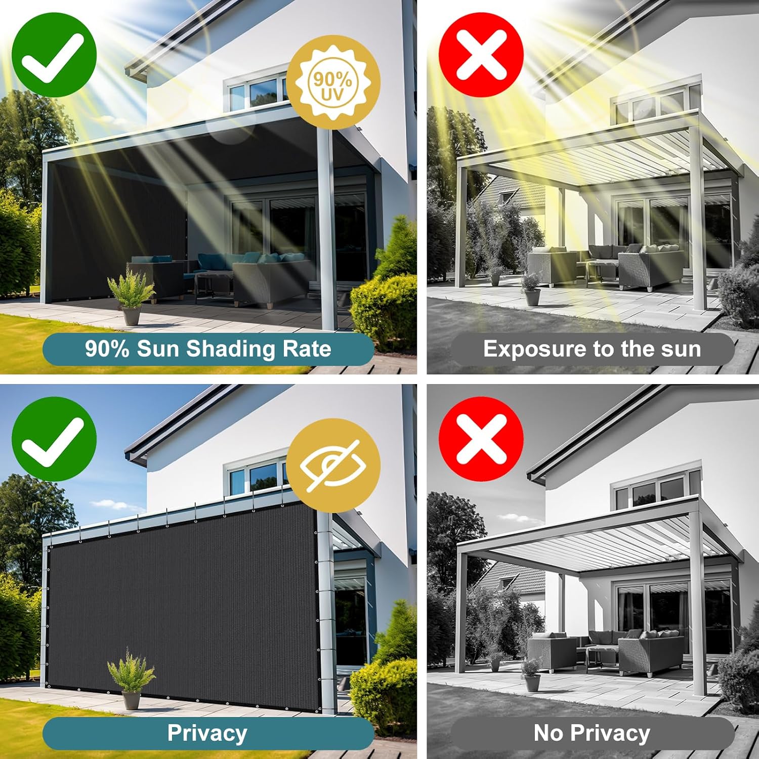 • Multiple Applications: This shade trap screen creates a comfortable outdoor seating area for you, offers a level of privacy from the outside without completely blocking your view of it. You can also use it to shield your greenhouse and plants from excessive sun exposure, or cover your pet house. Don't let the sun dictate your outdoor activities; take control with Shade&Beyond premium shade solution