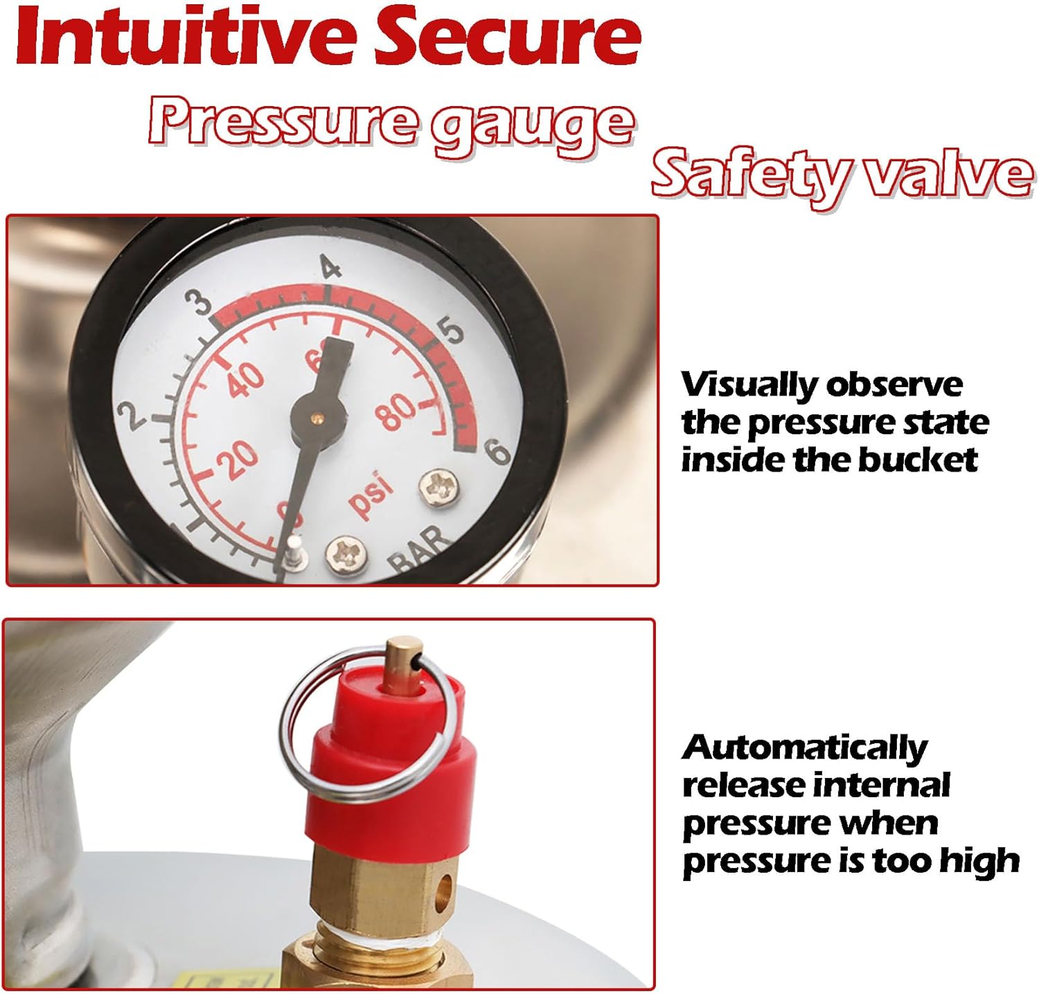 • Comprehensive design - Adjustable brass nozzles enable spraying from direct sprayed to achieve fine mist. The pressure gauge can intuitively display the pressure situation inside the tank. The safety valve can automatically release the internal pressure when the pressure is too high, so that the pressure is kept within the safe range.