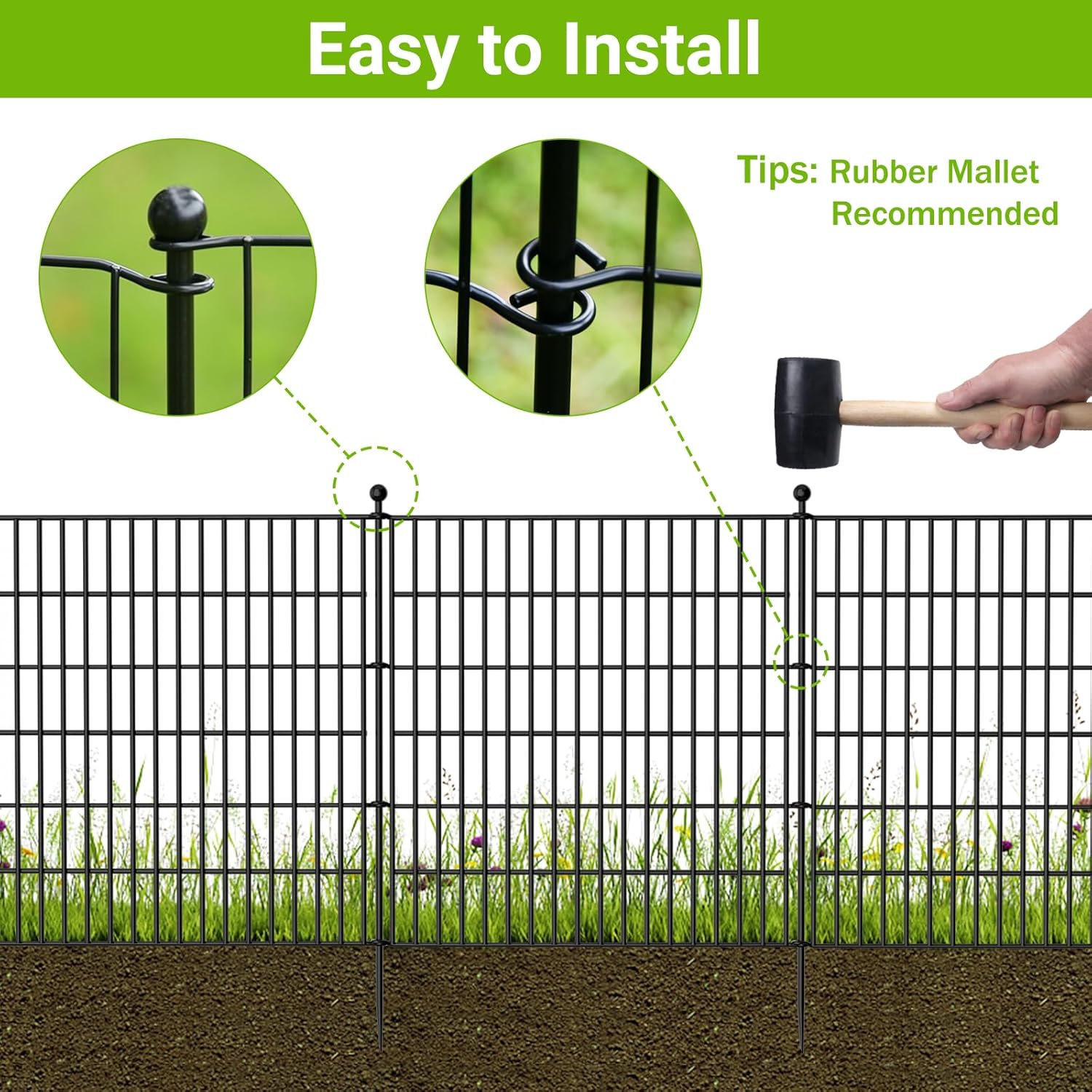 • LOW-MAINTENANCE & RUSTPROOF MATERIAL>>Say goodbye to the hassle of maintaining wooden fences. Our rustproof metal garden fence is made from high-quality wrought iron that won't rot, warp, or fade over time. Enjoy minimal upkeep and years of reliable performance in your yard and garden.