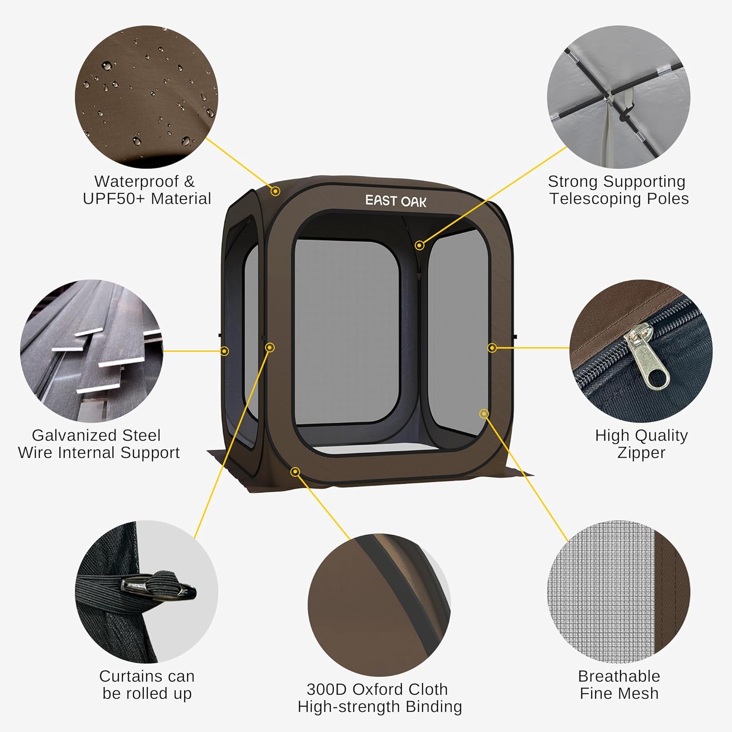 • ๐—ฃ๐—ผ๐—ฝ-๐˜‚๐—ฝ ๐—ณ๐—ผ๐—ฟ ๐—˜๐—ฎ๐˜€๐˜† ๐—ฆ๐—ฒ๐˜ ๐˜‚๐—ฝ ๐—ฎ๐—ป๐—ฑ ๐—ฆ๐˜๐—ผ๐—ฟ๐—ฎ๐—ด๐—ฒ: Suitable for 2-3 people, EAST OAK portable screen house features a convenient pop-up design that allows for easy installation by a single person in under one minute. The tent is designed to be easily folded and has a convenient carrying bag. Packed away in its included carry case, its dimensions measure a coimpact 31.5x3.2x31.5 inches
