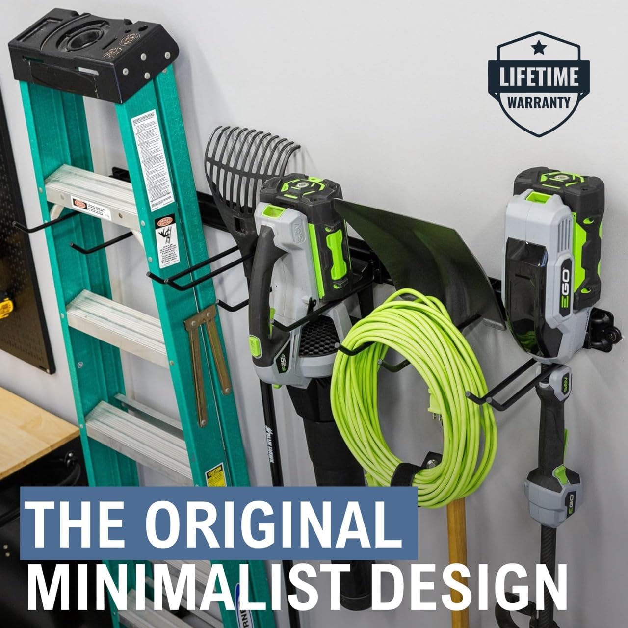 • INCLUDES 48" STORAGE RACK SYSTEM – Features modular wall hangers and wall shelves with expandable hooks that create a complete garage wall organizer. Dimensions: 48" wide with multiple tool storage organizer slots to secure yard tools, broom holder wall mount, and more.