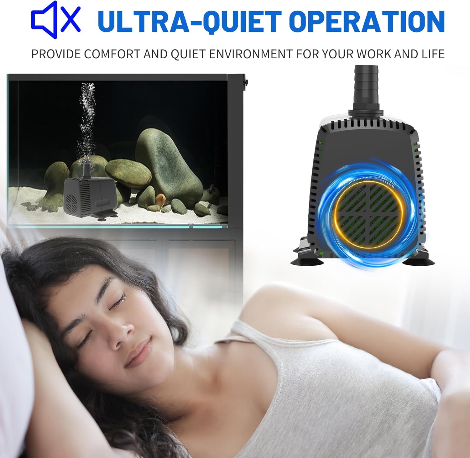 • 【Quality & Ultra Quiet】In order to keep the pump quiet and has a longer service life, increased the cost by using high quality rotor and copper,makes the pump quiet & has longer life than others.
