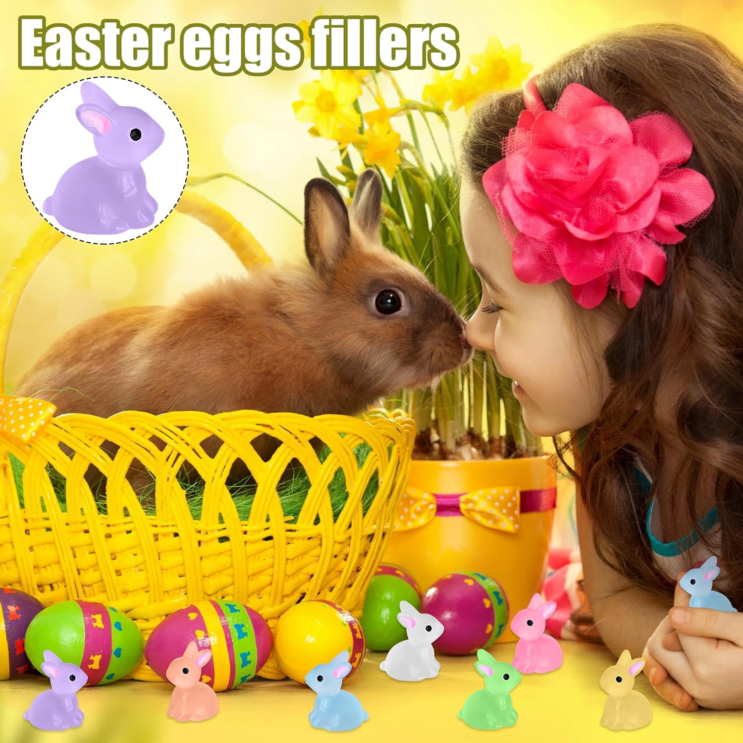 50 PCS Luminous Mini Resin Bunny Tiny Plastic Rabbits Glow in the Dark Miniature Bunnies Figurines for Easter Egg Fillers Fairy Garden Miniature Moss Landscape Decoration (7 Colors Tiny Bunny)