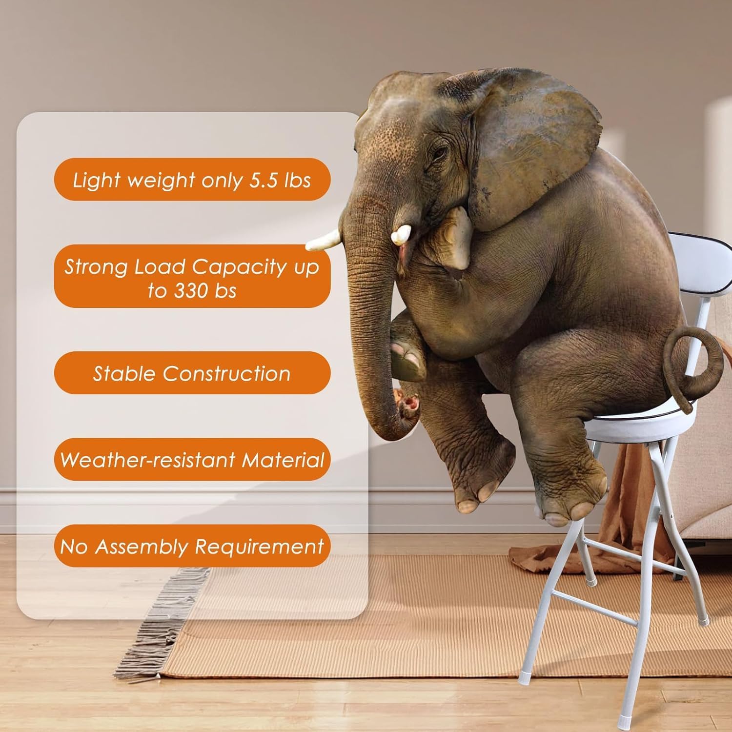 • EASY TO USE: No assembly is required, you can simply open the heavy duty folding stool portable chair and use it. When not in use, the barstool can be folded and placed in a corner