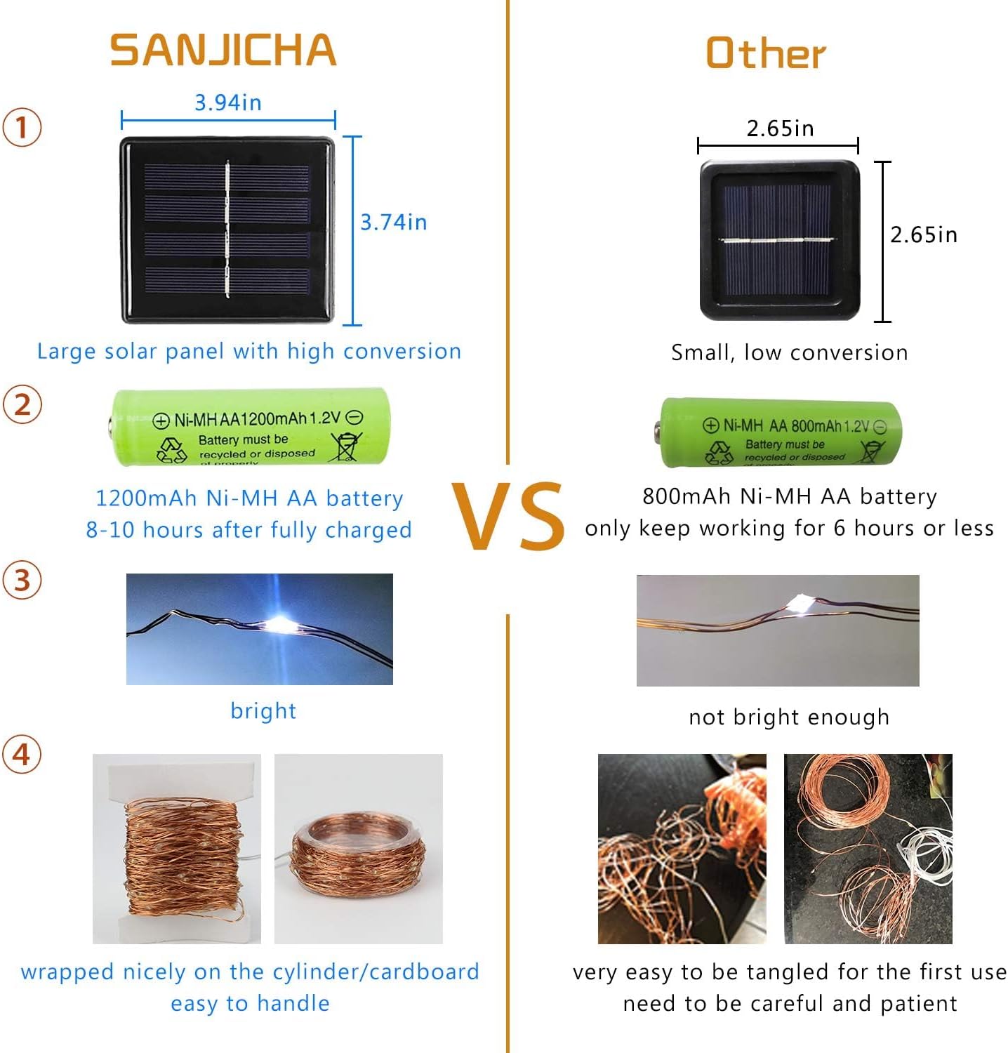 • New Upgraded Solar String Lights Outdoor: Super Bright 4-Pack Each 39ft 100 LEDs String Lights with Upgraded LED Bulbs, Higher Conversion with Larger Size Solar Panel, Larger Capacity Battery(1800mAh), IP65 Waterproof Performance.