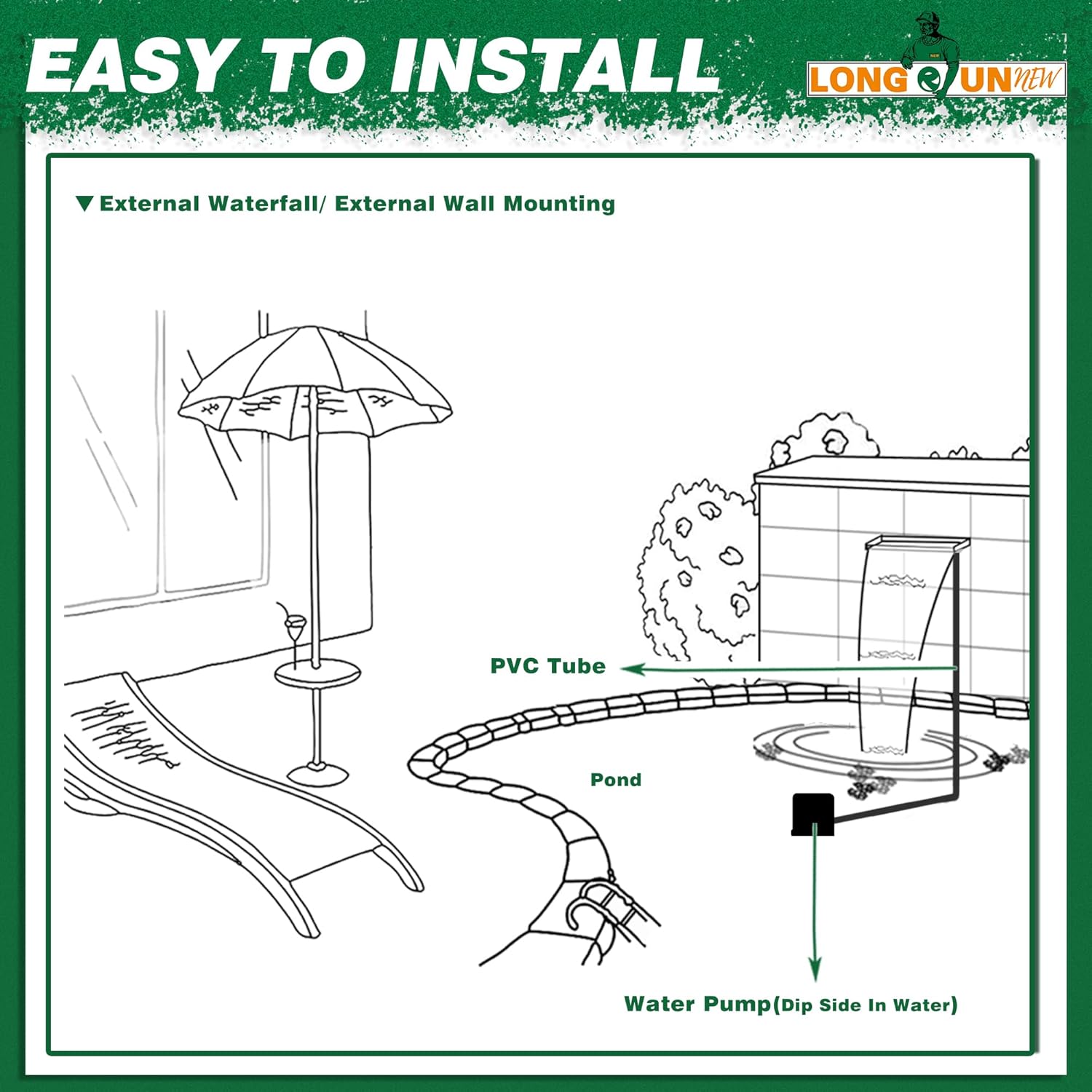 • 【Garden & Pond Decoration Waterfall】- The LONGRUNNEW waterfall spillway adds decorative elegance and beauty to gardens and pools. Optional color-changing LED light strips, sold separately, create a special ambience at night. The gentle sound of the cascading water enhances outdoor patios. Note: LED light strips are not included with the waterfall but can be purchased separately in our store.