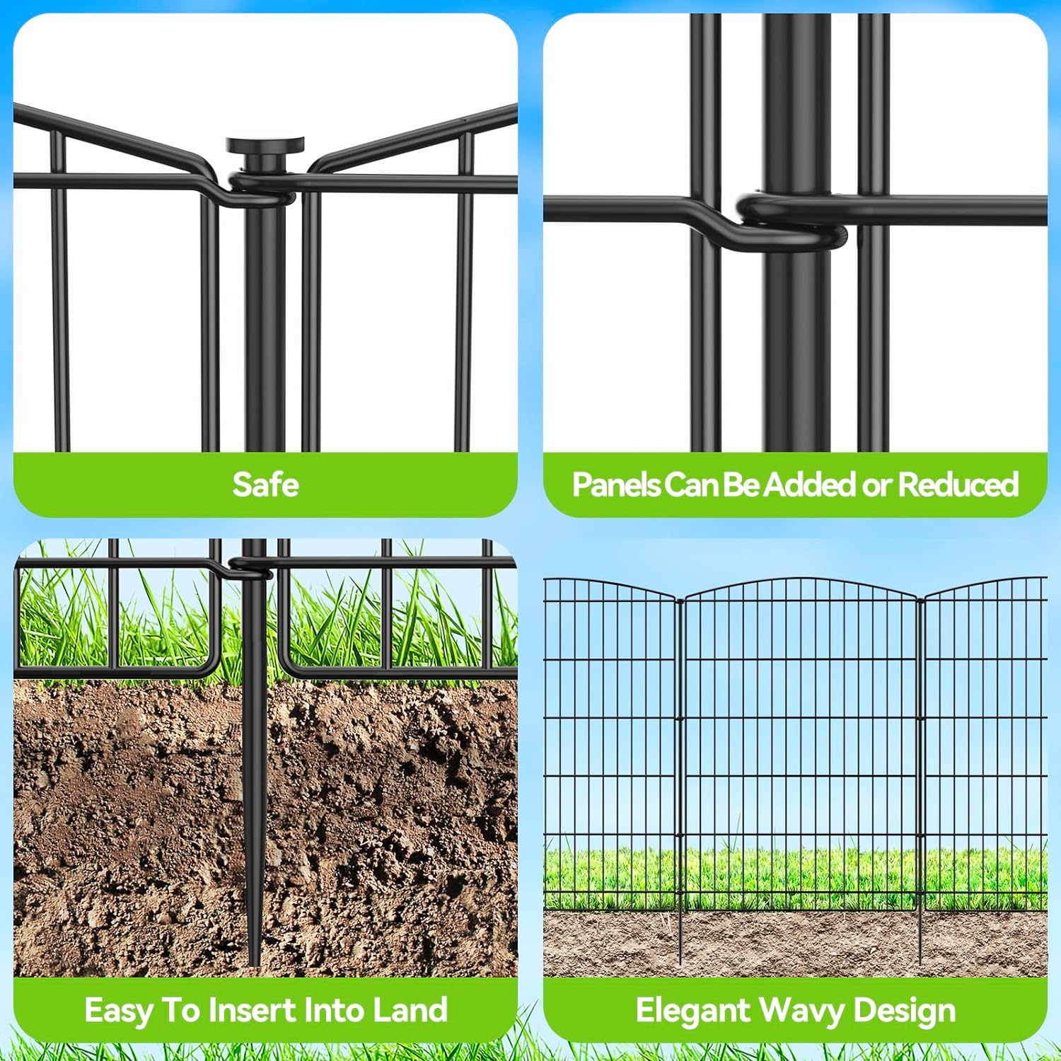 • Easy to Install:The dog fence for the yard are equipped with metal stakes, you only need to insert the metal stakes into the holes between the two fences, choose the installation location, and tap the metal stakes directly to install the outdoor fence. Easily create a beautiful garden fence without complicated installation process.