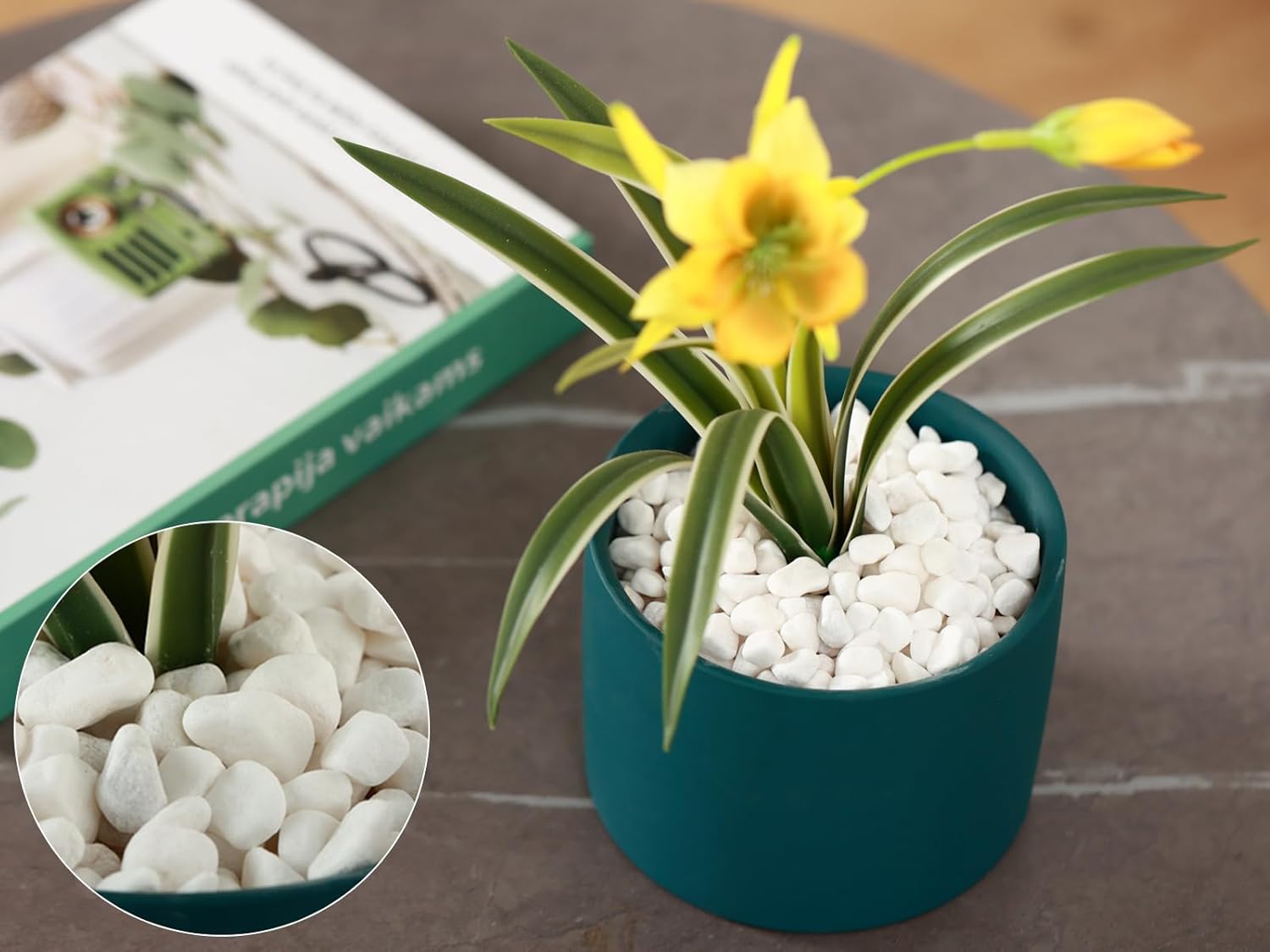• Natural Pebbles for Plants: Unlike wood mulch, which will deteriorate, these 0.24” - 0.35” small white stones are more cost-effective. These snow-white river rocks are great decorative stones for your bamboo plants, succulent plants, and various indoor outdoor house plants.