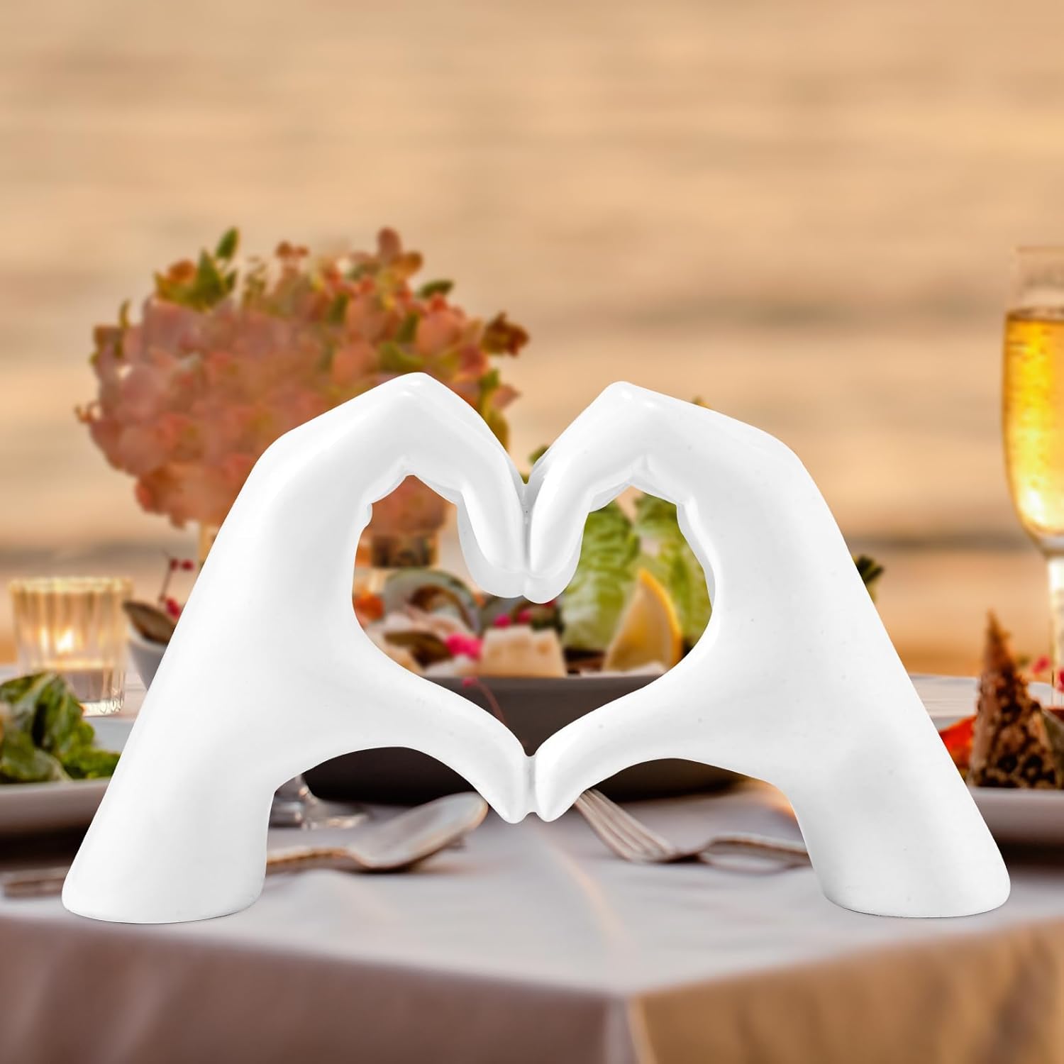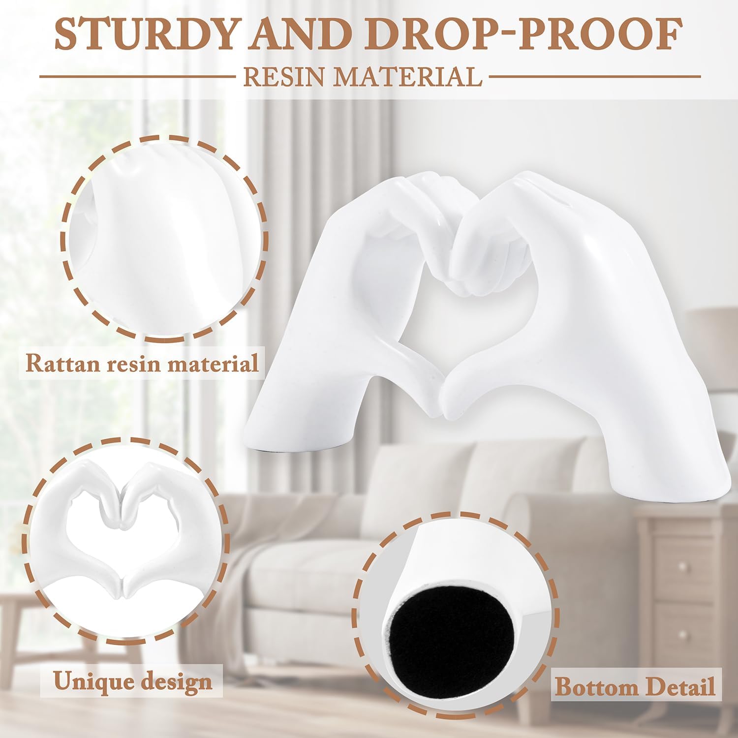 • [HEART HANDED SCULPTURE HOME DECOR]: Hand heart statue adopts sweet love gesture sculpture design; Nordic minimalist style resin handicrafts, love ornaments, modern love sign heart shape finger gesture statue, wedding for couple anniversary couple figurine. It is a whole pendulum and cannot be disassembled. Statue is perfect for home decor, room decoration, bedroom decoration, office decoration, living room decoration, hotel decoration, apartment decoration.
