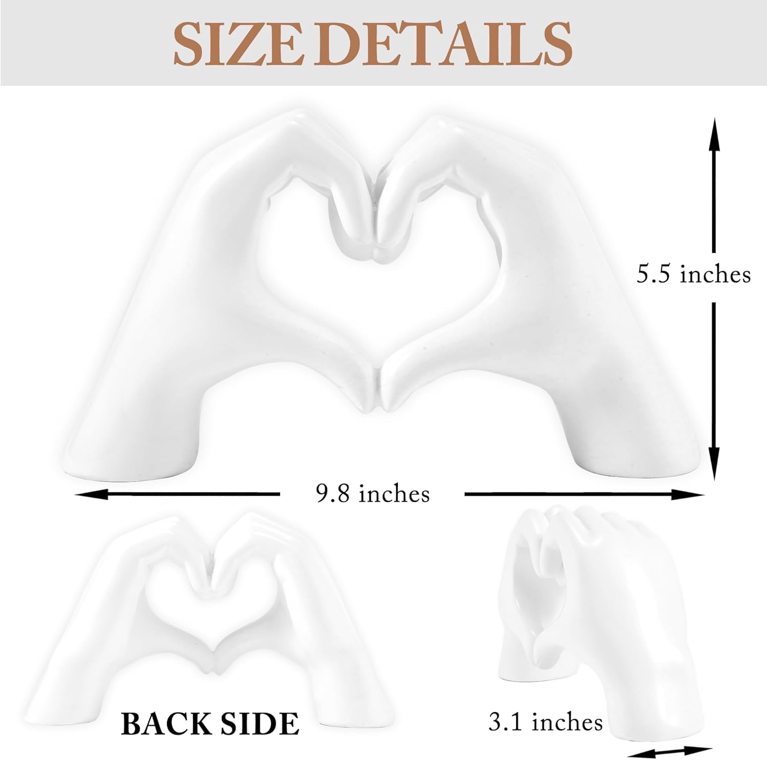• [GESTURE DESK STATUES PREFECT SIZE]: Heart gesture sculpture size: 9.8 inches long * 3.1 inches wide * 5.5 inches high. The hand statues size is suitable for a bookshelf, coffee table, desktop, fireplace, Mantelpiece, TV cabinet, entertainment center, workplace, etc.