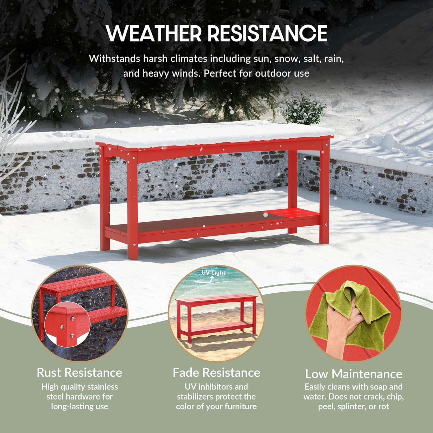 WestinTrends Malibu 55" Outdoor Patio HDPE Adirondack 2-Tier Shelf Console Table, Red