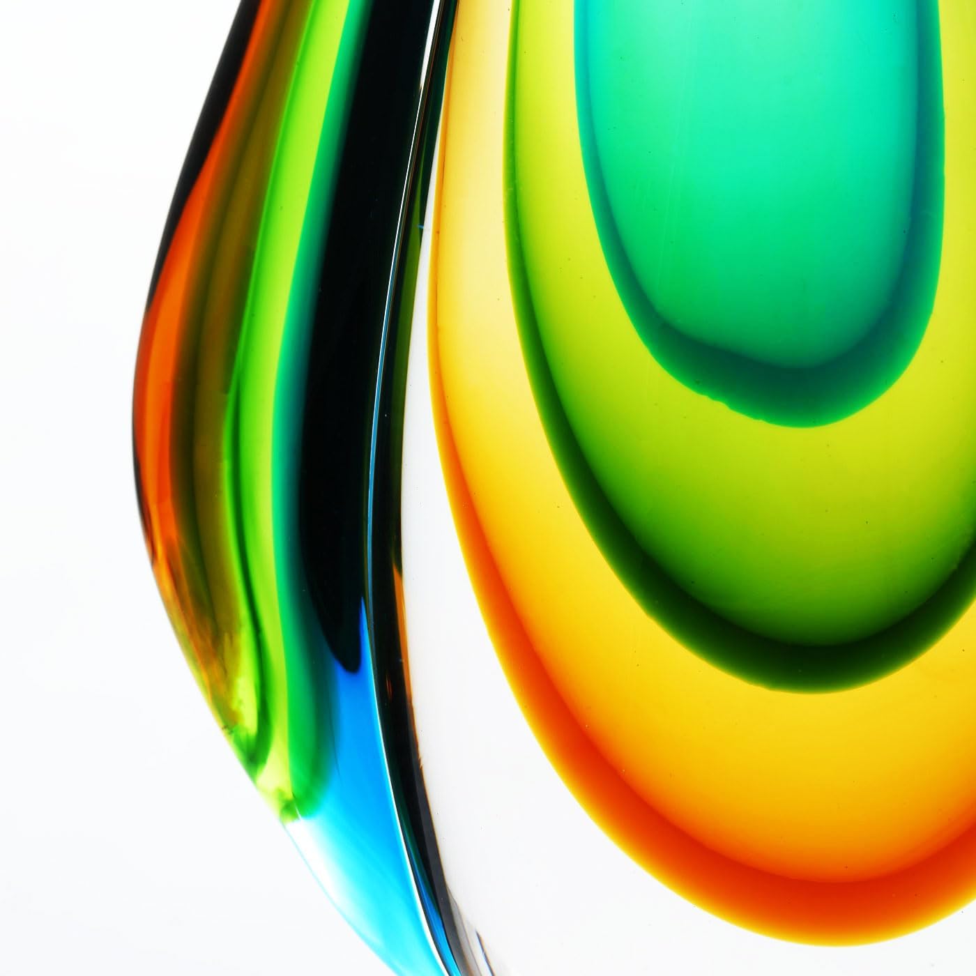 • Unlock the mesmerizing beauty of Murano style glass production with our handcrafted glass blowing and glass casting pieces. In this piece, multiple layers of glass are heated and pressed together to create slight variations in color, size, and thickness, making them one-of-a-kind treasures for your collection.