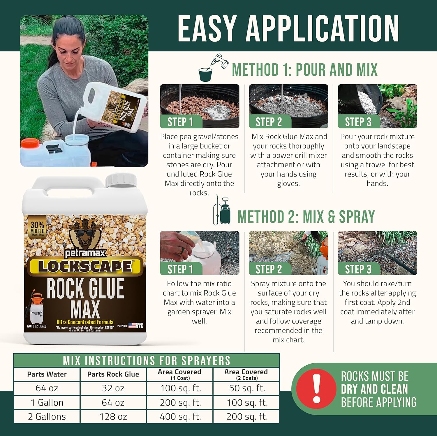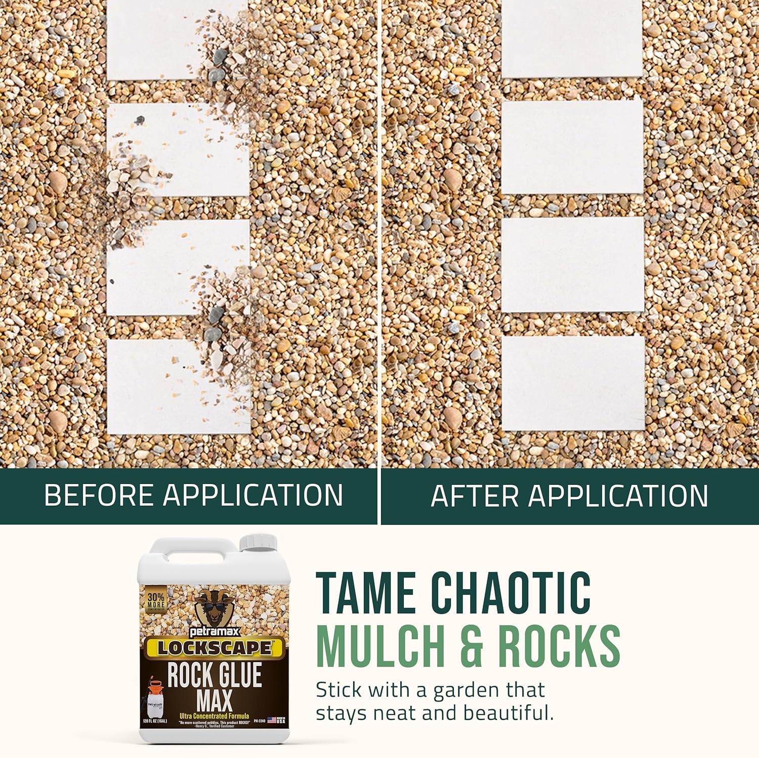 Petra Max Rock Glue for Landscaping, 1 Gallon - Wide Coverage & Pet Safe Mulch Glue for Rocks - Lockdown Gravel/Pebbles/Stones - Sticky Clear Gravel Binder & Decomposed Granite Stabilizer