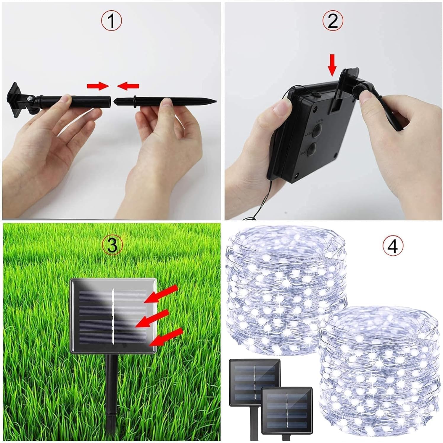 • 【8 Lighting Modes & Memory Function & Auto On/Off】: These Christmas solar twinkle lights have the On/Off button and mode button. You can select 8 different modes to satisfy your diverse needs by pressing the mode button.And the built-in memory chip saves your last modes setting, so there is no need to reset it again.