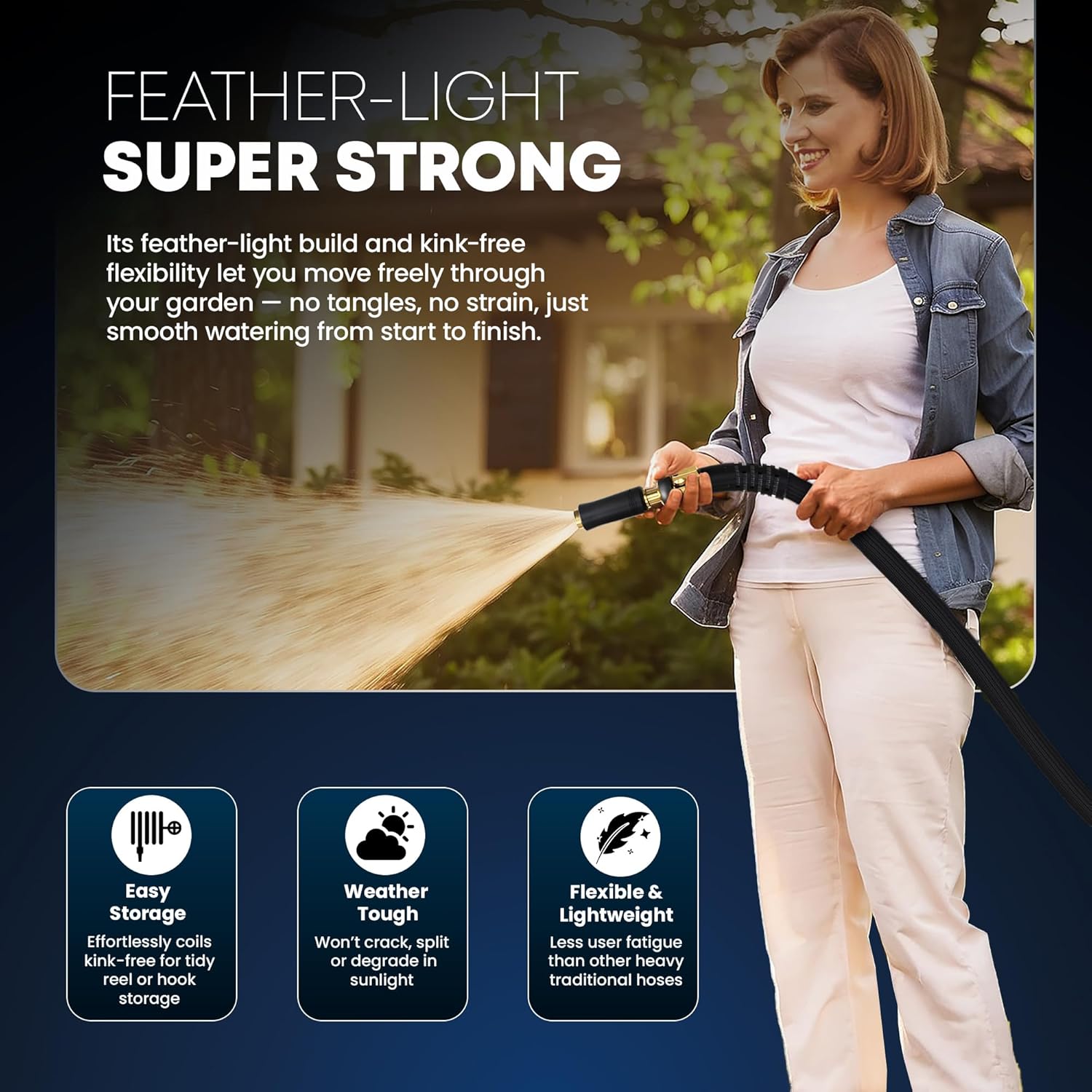 • [Feather-Light, Super Strong] Redefining watering with its incredibly lightweight design, experience unmatched watering efficiency with our Titan garden hose. When paired with our precision-engineered nozzle, this hose delivers exceptional pressure for everyday watering tasks while saving you water. Ideal for garden maintenance, vehicle cleaning, RV, marine use and more, for a powerful and consistent water flow.