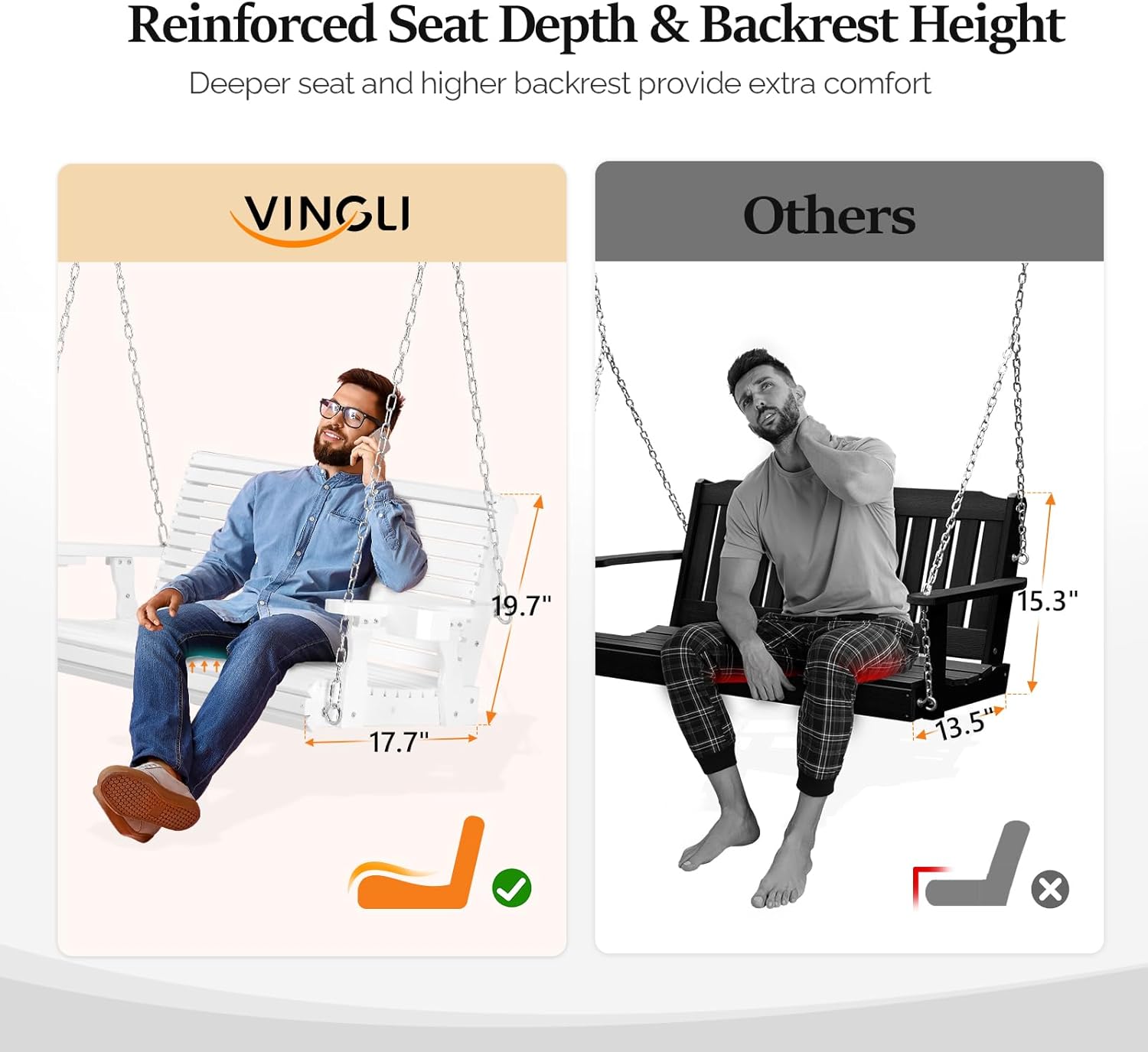 • Upgraded Product Size - We add the seat depth and backrest height on our swing bench, only to better support your body and bring more relaxation. Seat Depth = 21.7” and Backrest Height = 19.7”