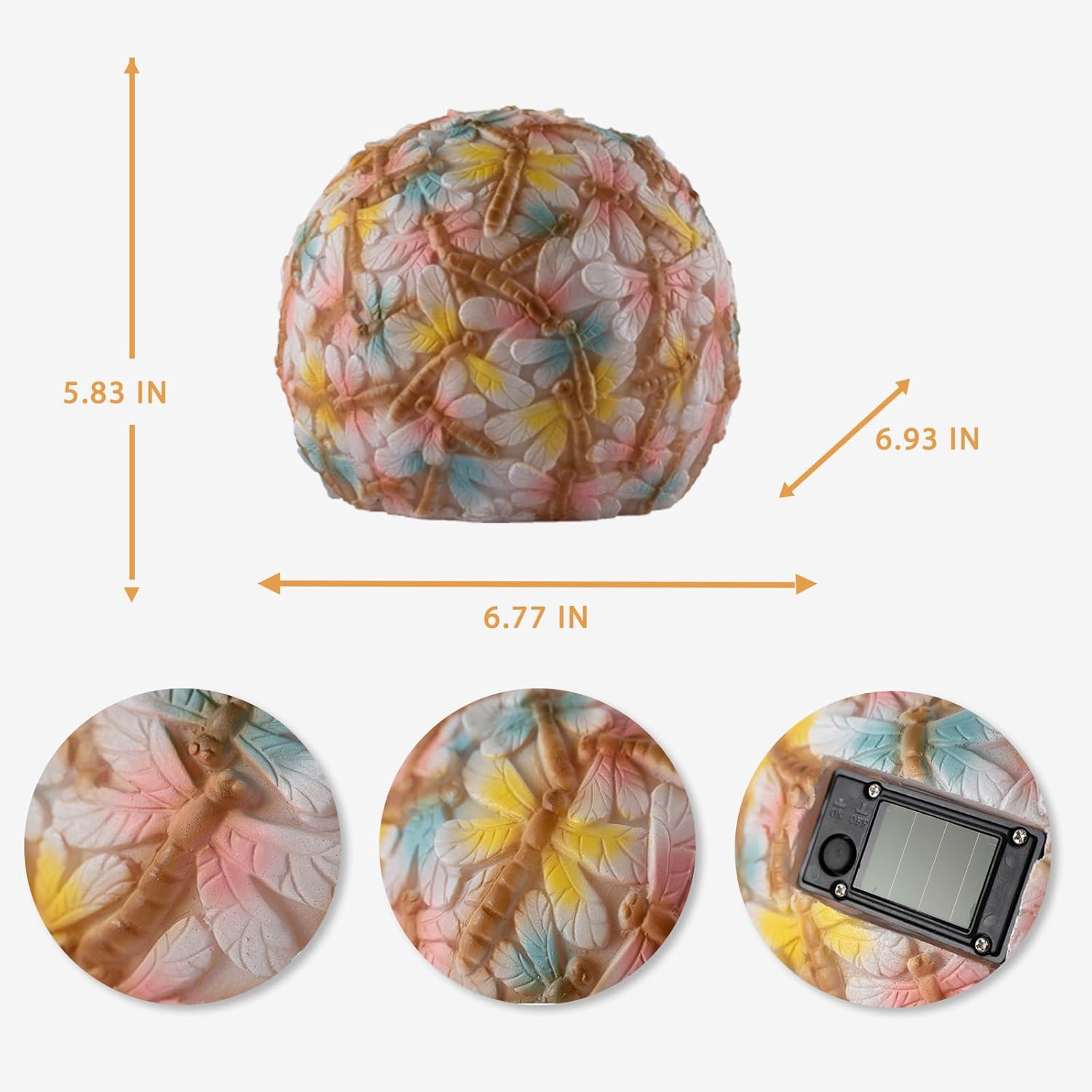 • 【GARDEN DRAGONFLY STATUE】Garden solar dragonfly ball statue has a unique design, with beautiful dragonflies carved on the statue, emitting color-changing solar light that can bring a warm and charming atmosphere to your garden.