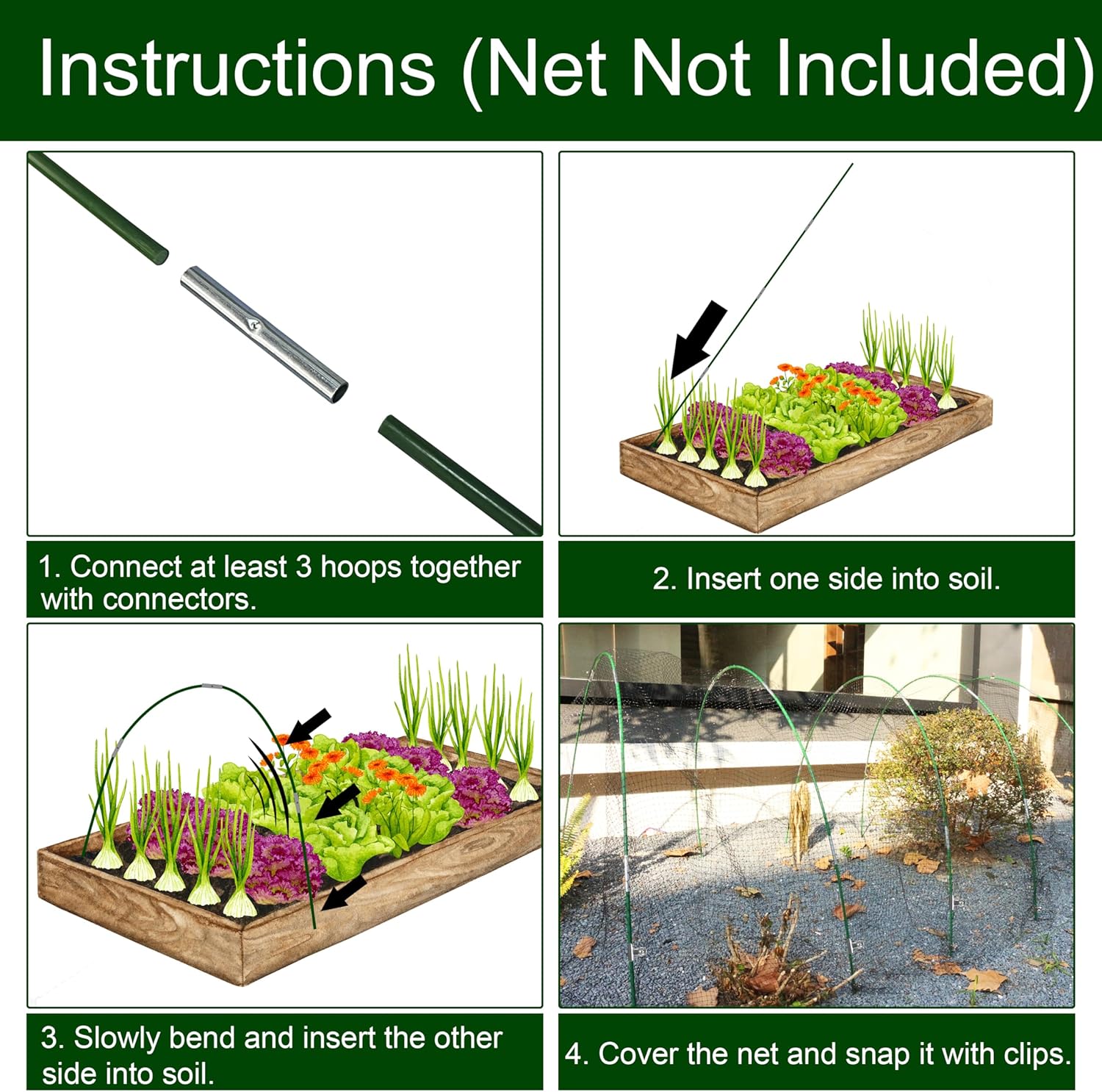 • DIY & Reusable: Each 17" rod connects effortlessly, allowing you to bend and adjust the hoops to any desired width or height; After the growing season, disassemble for compact storage and reuse year after year