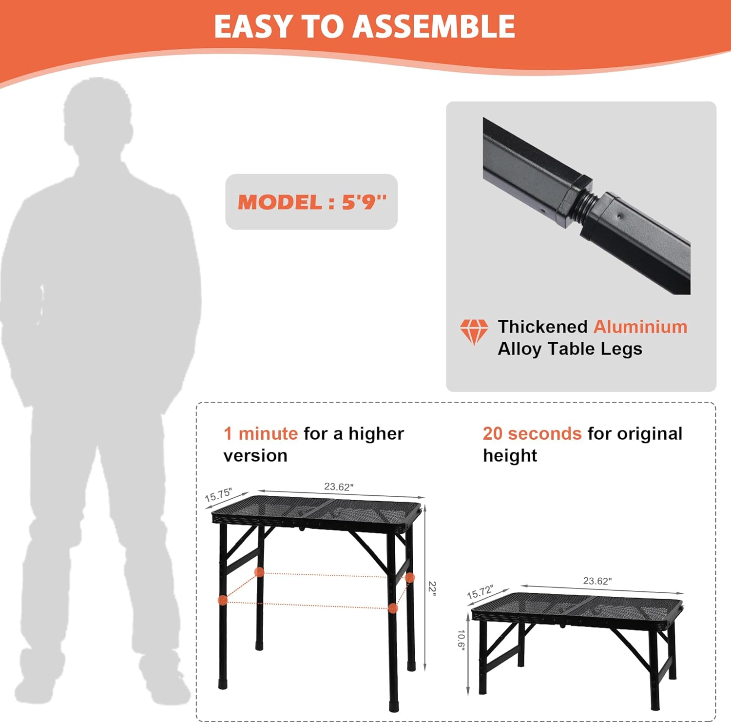 • Easy to Clean: The top of this folding table features an iron mesh design that resists heat, water and rust. Allows spills and crumbs to pass through for easy cleaning and maintenance.
