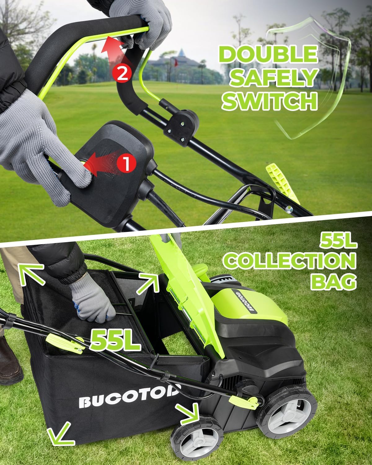 • SAFE & EASY OPERATION: BUCOTOD dethatcher scarifier featuring two switches to prevent accidental starts. Operating is a breeze – simply press to start. The ergonomic design 3-position adjustable rod caters to users of different heights, meeting the diverse needs of every family. Enjoy the ease of use without compromising on safety.