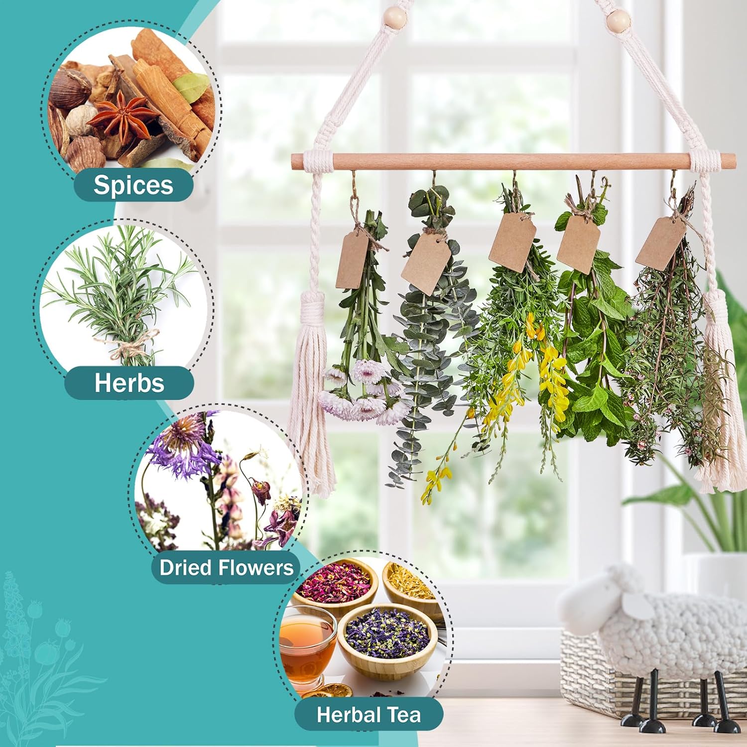 • Our Use of Drying Rack Plants to Dry Herbs, so that your home filled with herbs, sage, flowers and other plant fragrance, become a Bohemian home exquisite decoration. Can be used as plant lovers, housewarming, Mother's Day and other holiday gifts.
