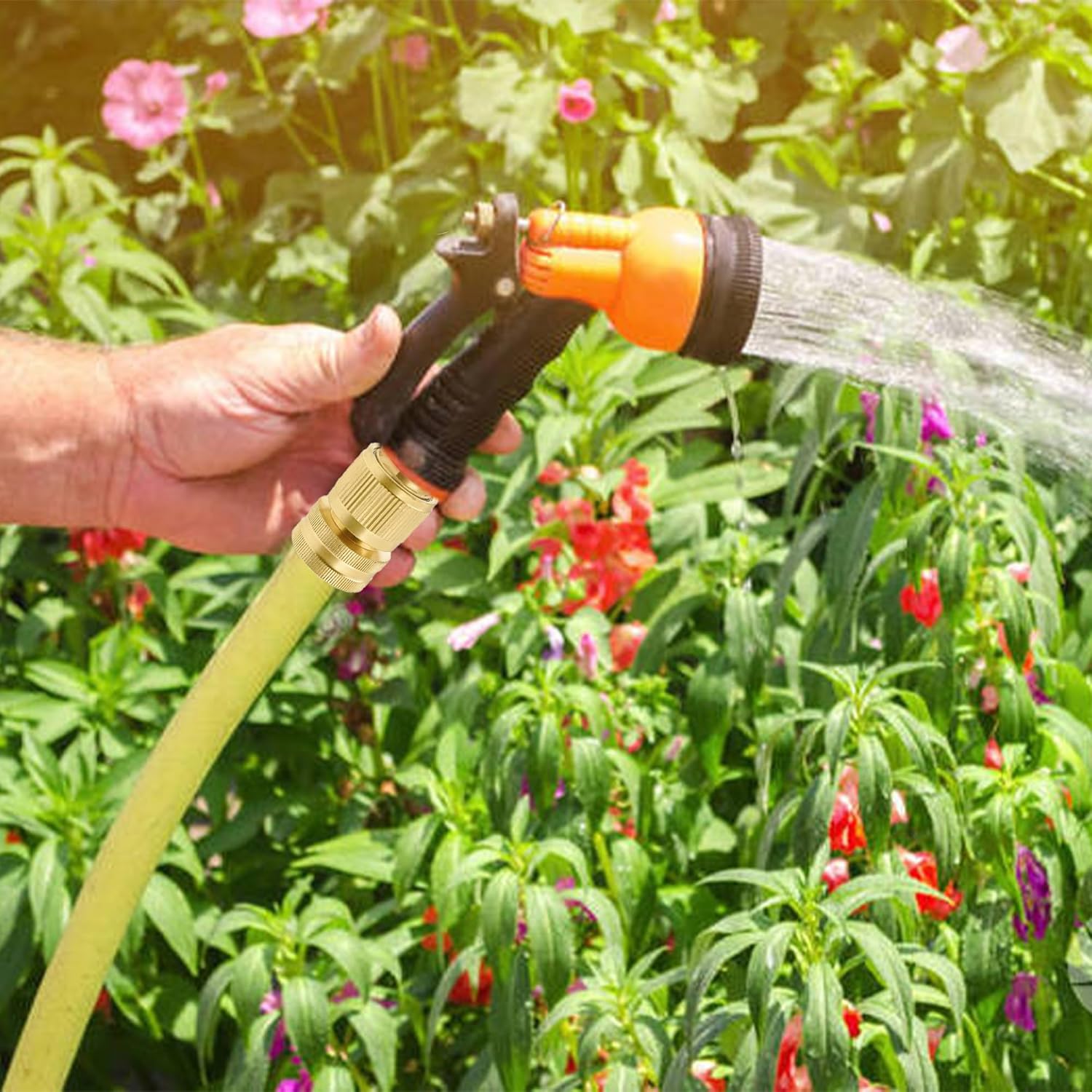 • Standard Size: Standard 3/4" GHT hose connector, works with all kinds of garden hose. Suitable for any Garden hose thread sprayer, sprinklers, faucet, lances, nozzle and other irrigation accessories.