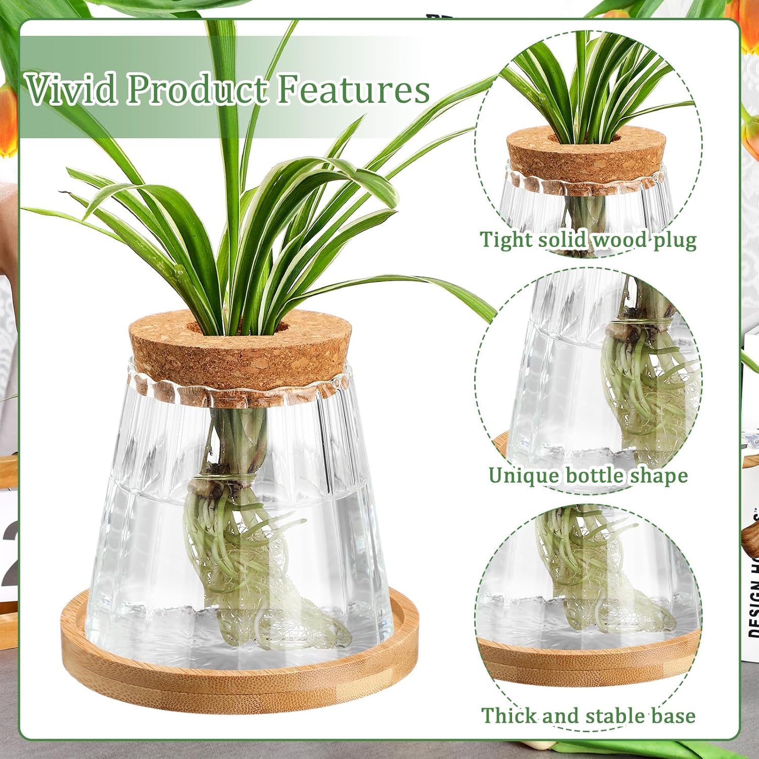• Quality Material: the propagated plant vase is crafted from quality glass with wooden lids and stands; With its primary color as clear, the terrarium exhibits a minimalist yet elegant look, and the quality material combination ensures the terrarium's durability while enhancing your space aesthetics; In addition to this, it is also convenient for you to observe the growth of the plant's root system