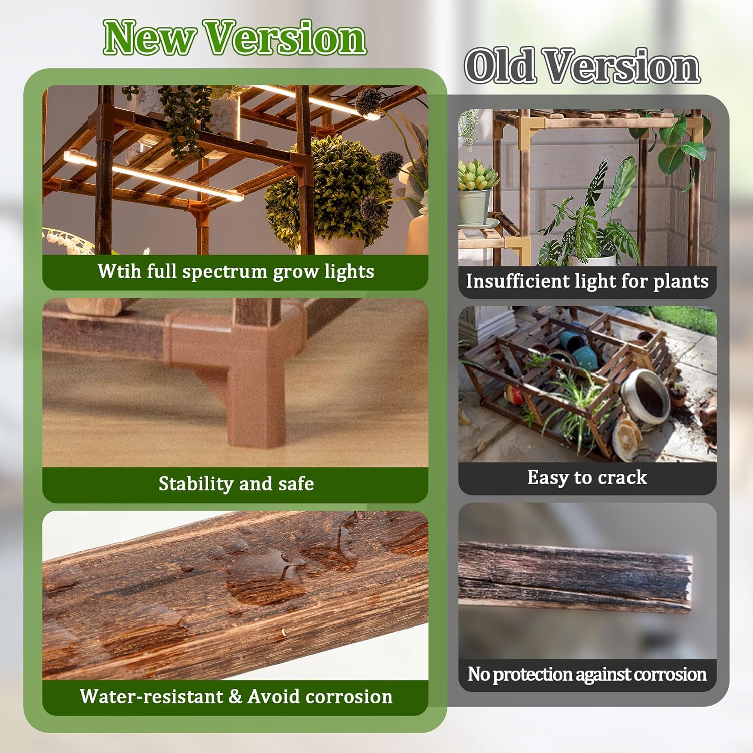 • [12-Tier, 63" Elevated Plant Stand] This 63" plant stand indoor features 12 pot stands. Our planter stands for indoor plants space-saving design with small footprint, making full use of vertical space in unused corner areas. Plant Stand with Grow Lights the staggered design offers enough space for different kinds the even gap makes them get enough air and sunlight