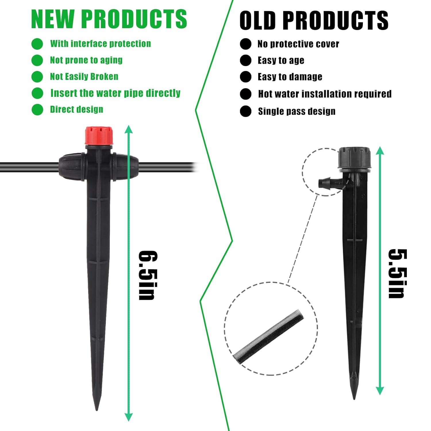 • 【For 1/4 inch drip irrigation tubing】 The adjustable 360 degree water flow 1/4 inch adjustable irrigation emitters drippers offer versatility in watering, Ideal for 4mm(ID) garden watering hose. Double locked head connecting can quickly and efficiently create small irrigation systems.