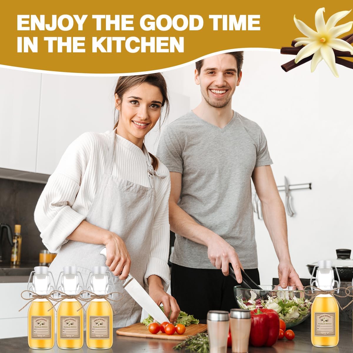 • Reliable Material:Our vanilla extract bottles are made of high quality durable and clear glass,it allows you to clearly see what's inside the bottle,and the leak proof swing top is mainly crafted from sturdy metal,it won’t leak and keep fresh, i think it can serve you for a long time