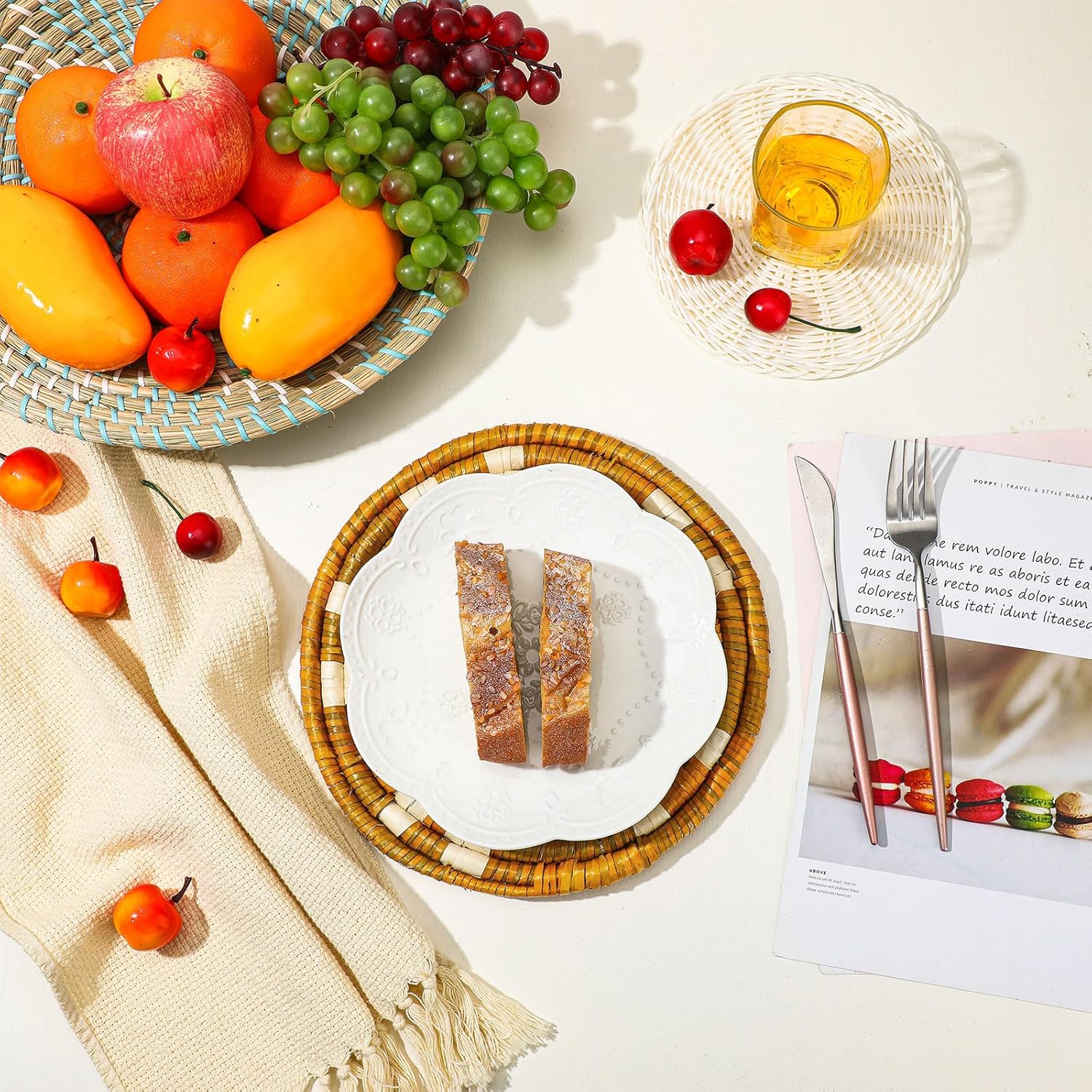 • Wide Range of Applications: boho basket wall decor set as placemats, or as decorative baskets to store toys and accessories, the rustic basket wall art is suitable for many occasions, such as hotels, restaurants, living rooms, bedrooms, schools, stores, offices, dorms, shops, Christmas and more, bringing you an elegant and classic feeling