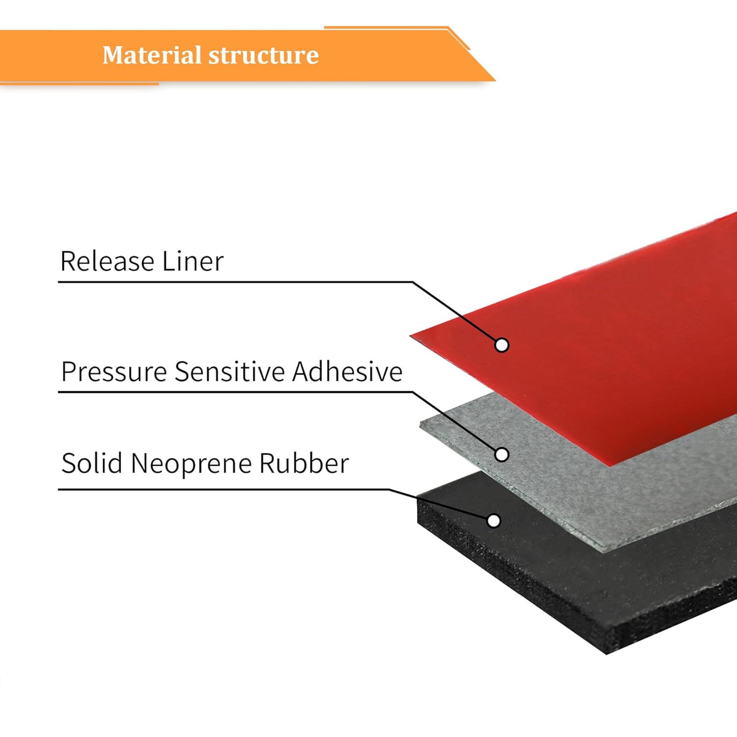 • HIGH QUALITY RUBBER MATERIAL-The Adhesive Rubber Strips are made of high quality neoprene rubber raw materials, tear-resistant and long-lasting,it is not sponge or foam.