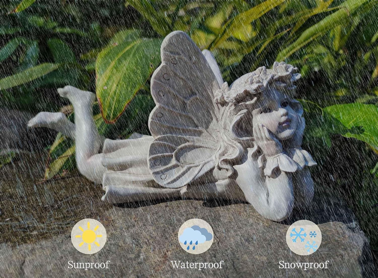 • ๐–๐ž๐š๐ญ๐ก๐ž๐ซ-๐๐ซ๐จ๐จ๐Ÿ ๐š๐ง๐ ๐ƒ๐ฎ๐ซ๐š๐›๐ฅ๐ž ๐Œ๐š๐ญ๐ž๐ซ๐ข๐š๐ฅ: Resilient Beauty! ๐ŸŒง๏ธ Crafted from durable resin and hand-painted with a UV-resistant coating, our angel fairy withstands the elements. Rain, snow, or scorching sun won't crack, fade, or rust this figurine. Enjoy enduring beauty for years to come.