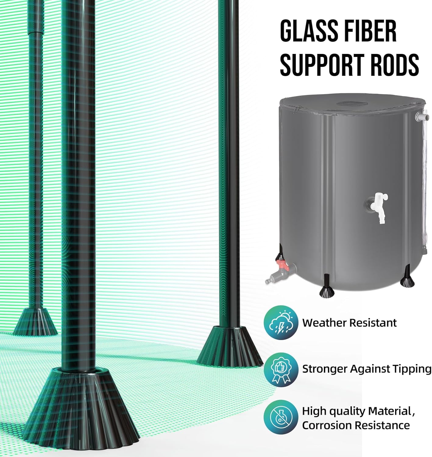• 【Durable and Sturdy】Crafted from durable 500D 3-ply PVC materials, our Rain Water Collection Barrel are engineered for enduring strength, capable of withstanding the harshest elements.For added stability, our Rain Barrels to Collect Rainwater from Gutter feature stiff fiberglass rod, effectively eliminating any wobbling or tipping issues.