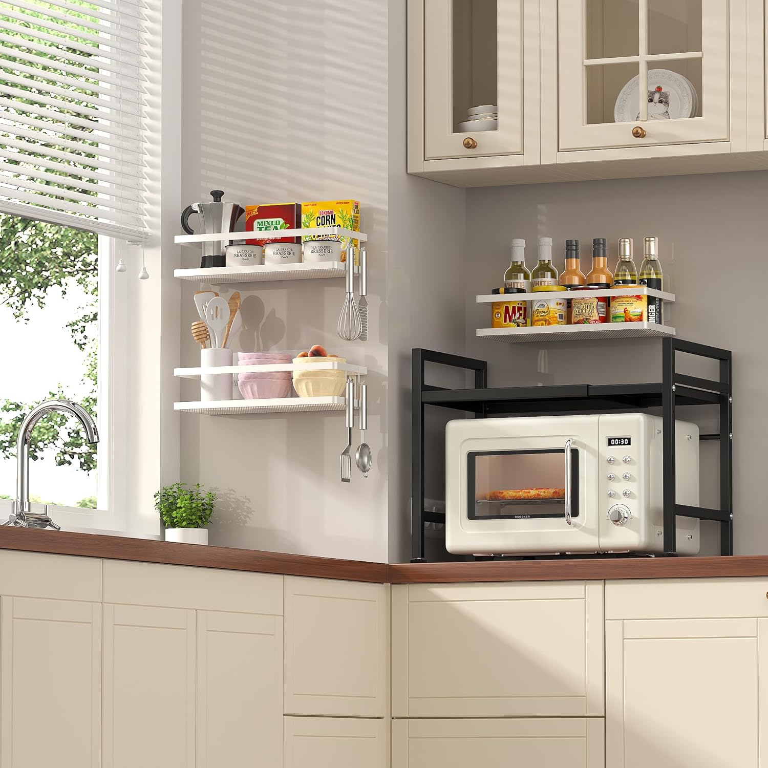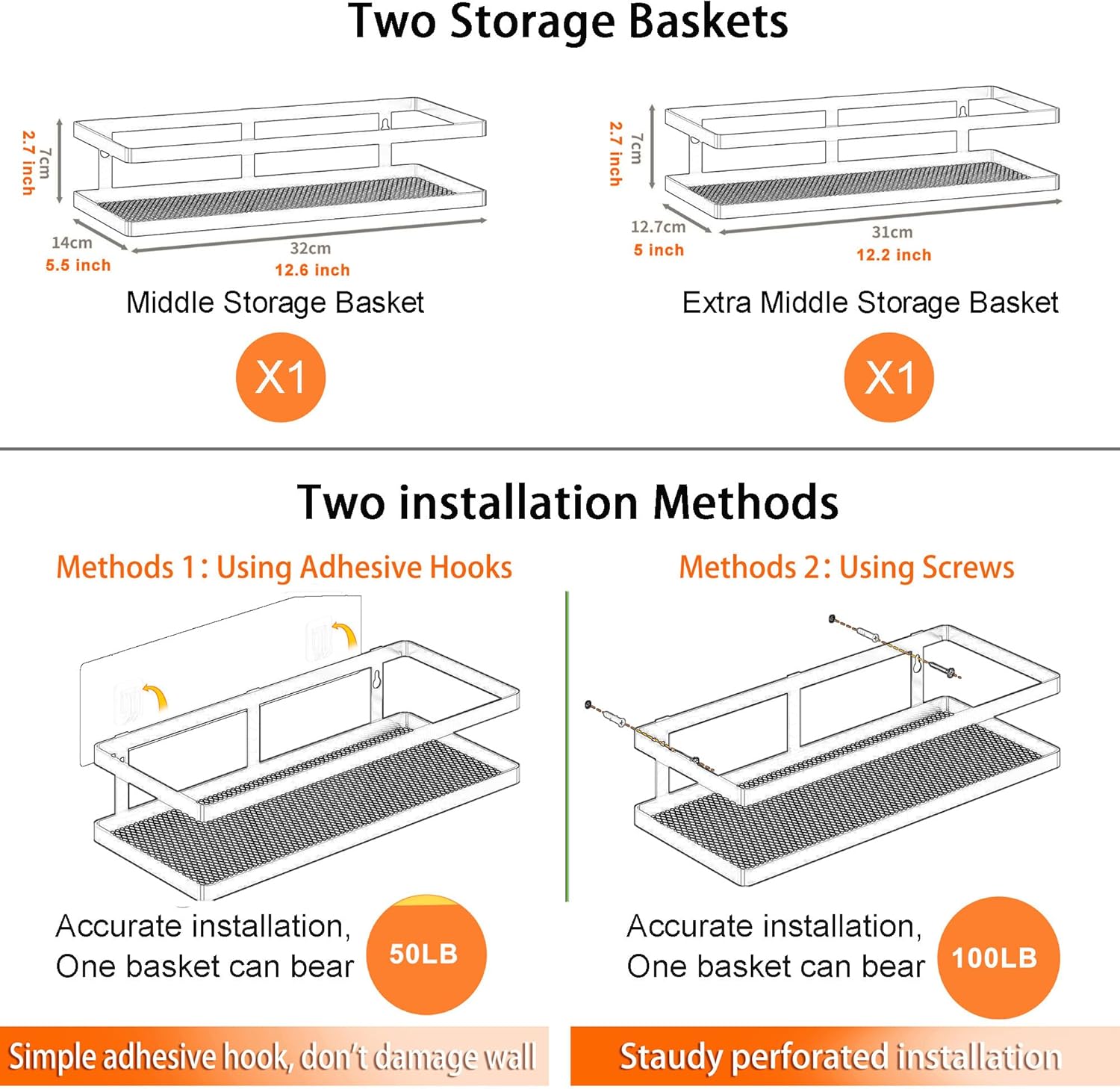 PUSDON Hanging Storage Baskets Organizer Wall Mount, Metal Wire Storage Bin Rack for Kitchen Bathroom Shower Spice Shelf Home Decor Essentials White-2 Packs (Guardrail)