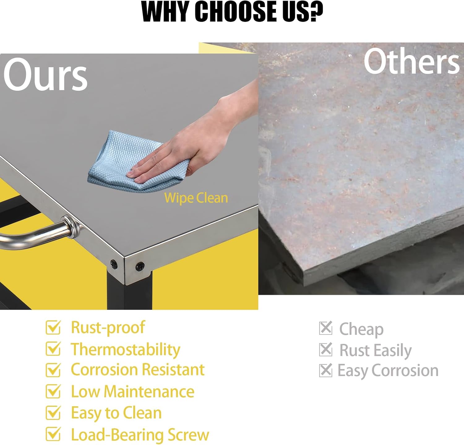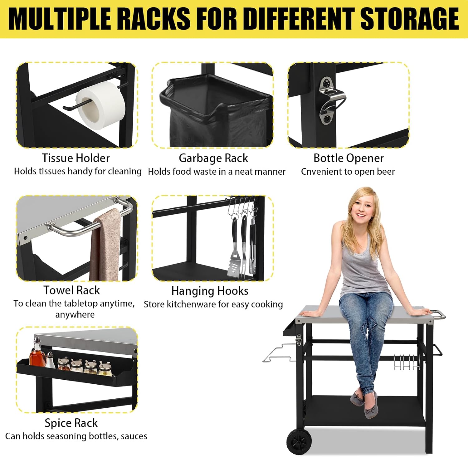 Outvita Outdoor Grill Cart, Movable Food Prep and Work Cart Table, Pizza Oven Stand Table with Wheels, Indoor & Outdoor Multifunctiona Stainless Steel Flattop BBQ Table for Home Party Camping