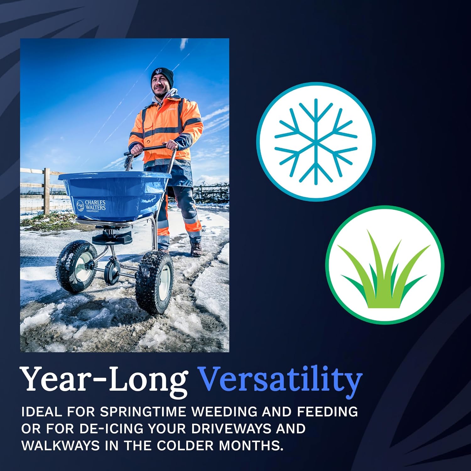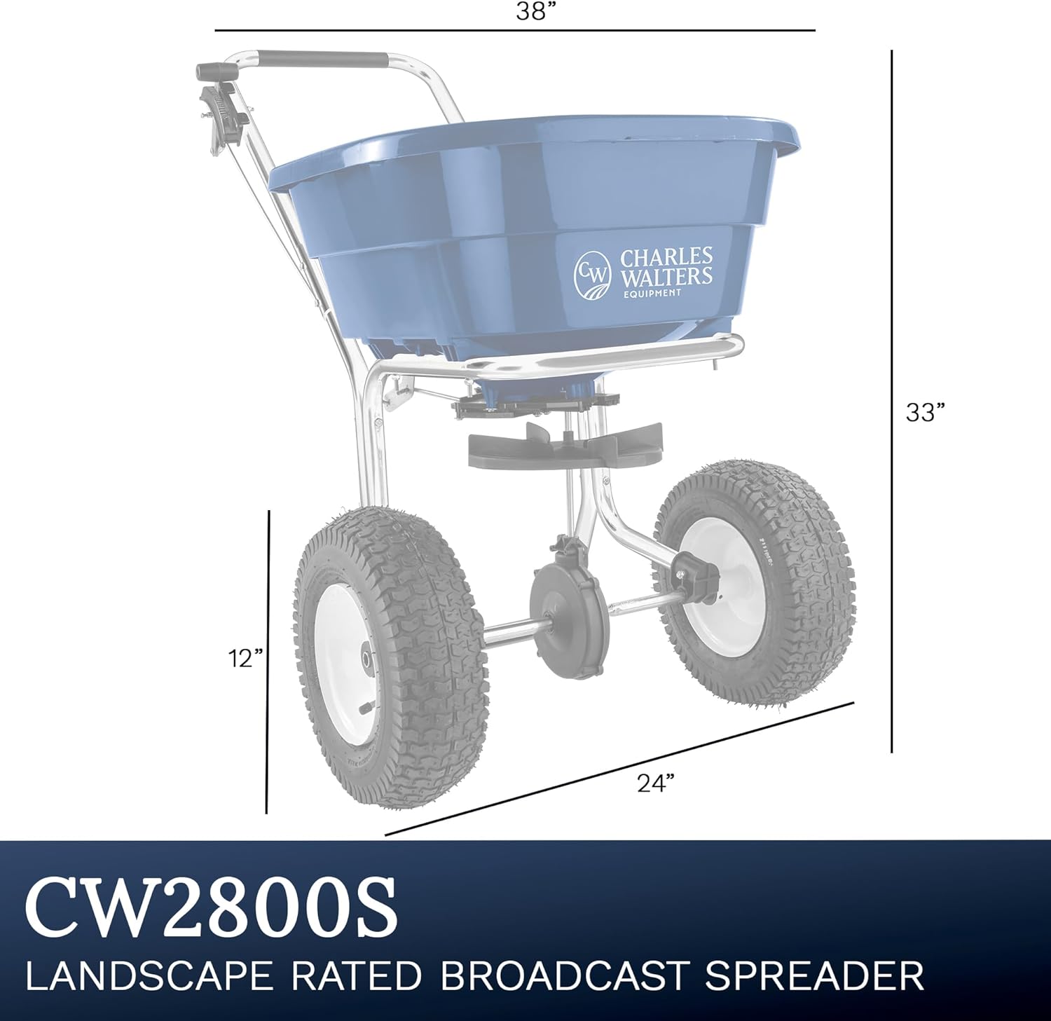 Charles Walters Equipment CW2800S Landscape Rated Broadcast Spreader with Stainless Steel Frame for Spreading Fertilizer and Ice Melt on Lawns, Walkways, and Driveways, 80lbs Capacity, 38" x 33"