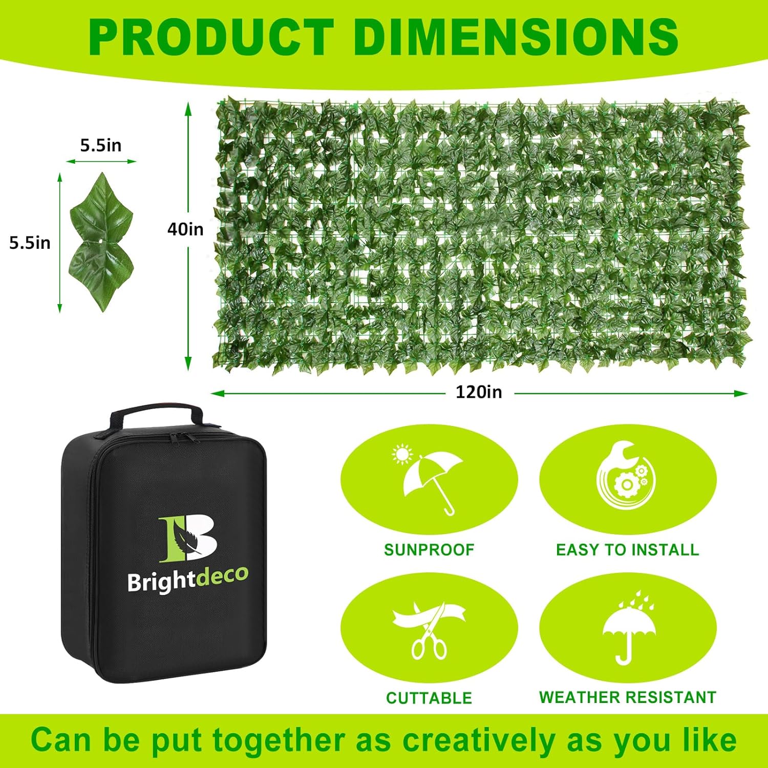 Artificial Ivy Privacy Fence Screen 40x120in Privacy Hedges Wall Faux UV-Anti Panel for Indoor Outdoor Garden Balcony Decor